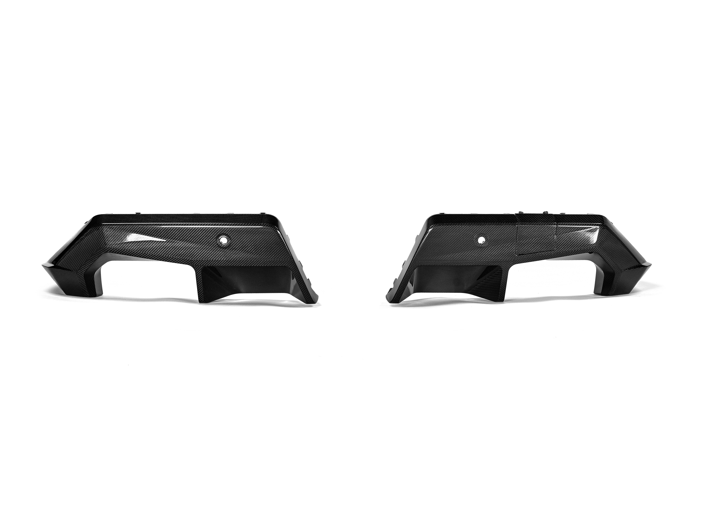 This diffuser has been hand-made in house from lightweight carbon-fibre and comes with a high-gloss finish. This is a completely new design and an optional product for the BMW M5 (G90, G99). It keeps within the lines of the car and is designed to emphasize the sporty prowess of the Akrapovič Tail Pipe Set (Carbon). It is ABE approved.
