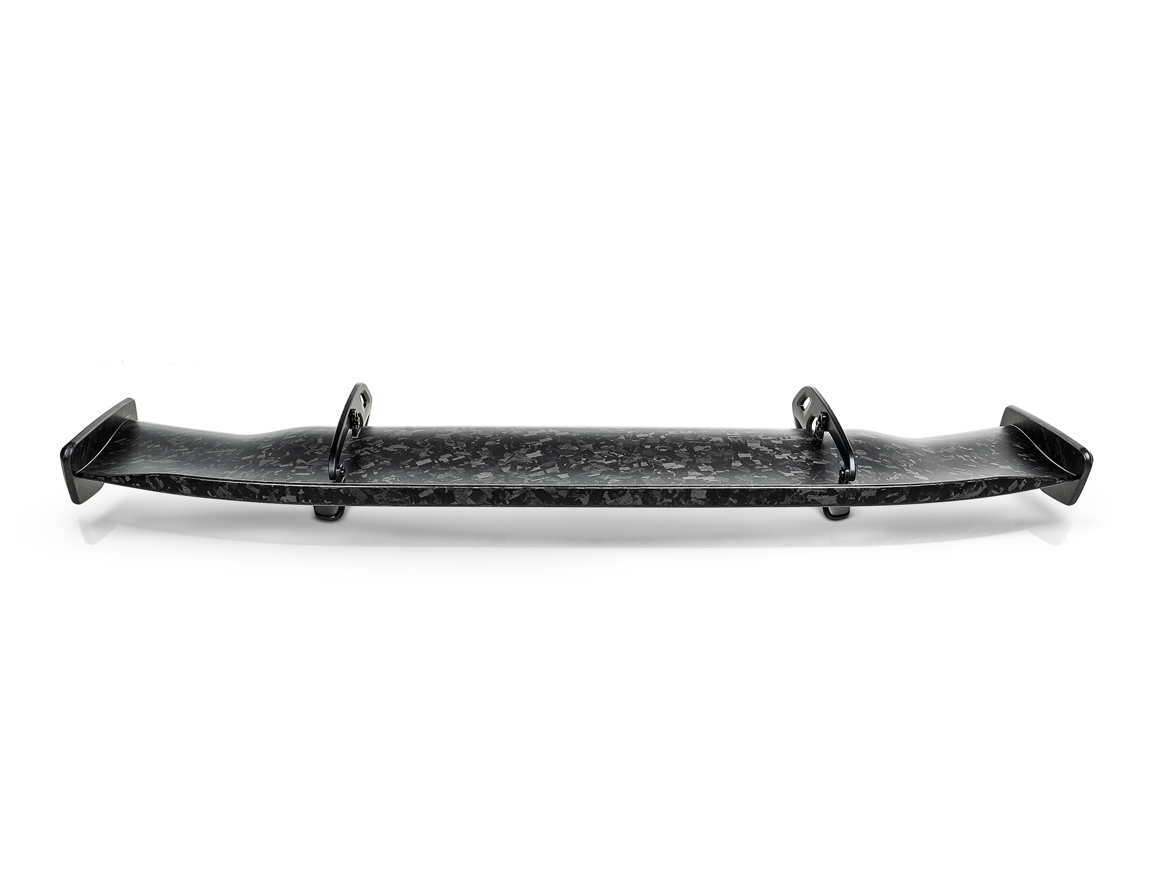 Manufactured from lightweight hand-crafted chopped carbon fibre, this product is lacquered to create a high-gloss finish. It is mounted on two brackets with a swan neck design, fabricated from lightweight CNC-machined aluminium to provide the best ratio between weight and performance. The brackets have been optimized to provide the optimum ratio between load-bearing capacity and weight. The bolts used to connect the wing and the brackets are high-grade titanium. High-grade titanium reinforcements have been incorporated for better structural stability at pivot points. Designed with echoes from the motorsport world, the derived aerofoil of the wing was developed to achieve an extremely competitive ratio between downforce and drag. A small lip is placed at the trailing edge of a wing to achieve maximum performance of the wing by creating even more downforce.