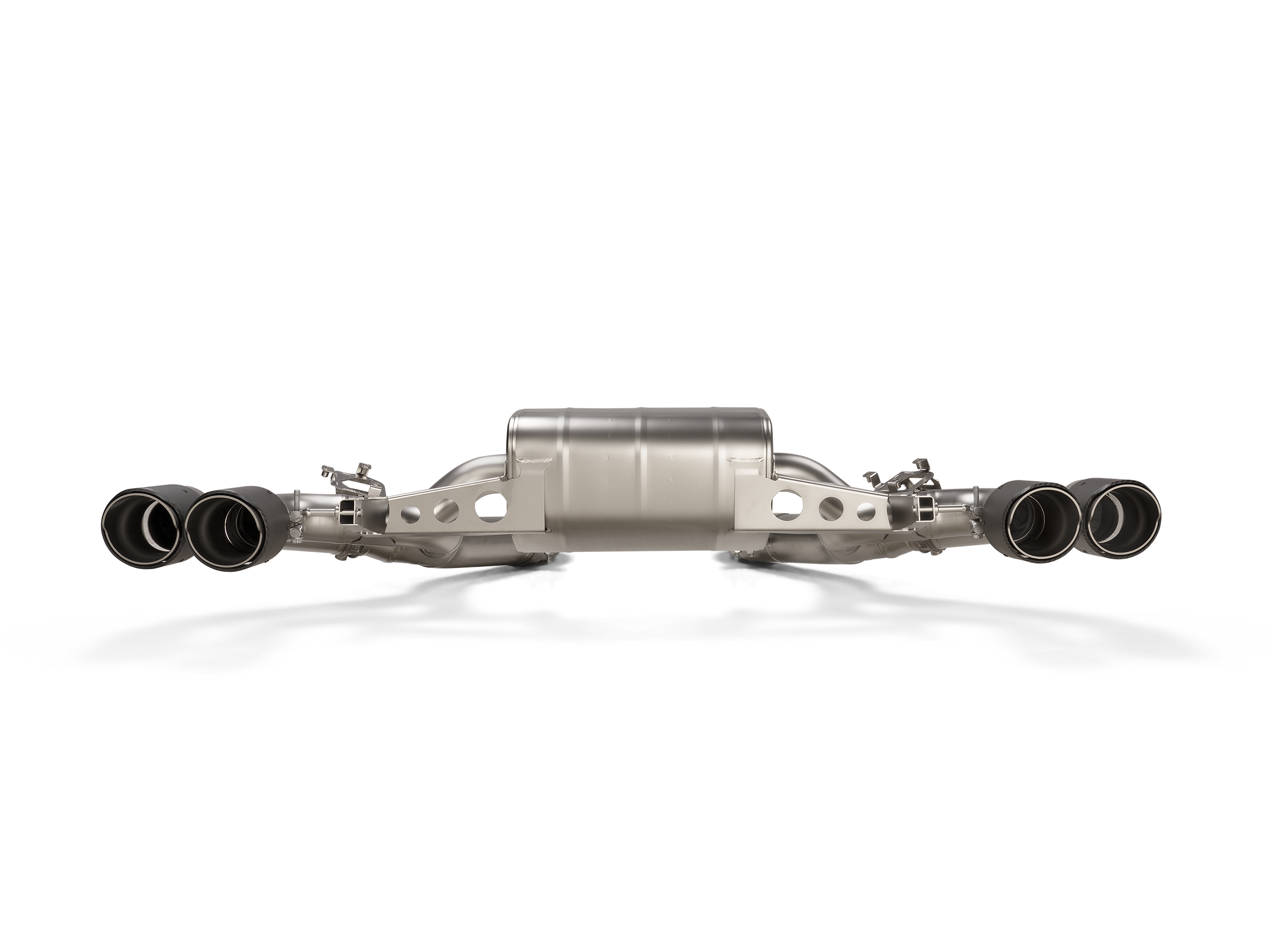 Hergestellt aus hochwertigem, leichtem Titan – einige Teile wurden in der eigenen Gießerei von Akrapovič gegossen – reduziert das System das Gewicht der Abgasanlage. Entwickelt, um sowohl Leistungs- als auch Drehmomentsteigerungen über den gesamten Bereich hinweg zu erzielen, wobei die meisten Verbesserungen bei niedrigeren Drehzahlen erzielt werden, wird das Ansprech- und Fahrverhalten verbessert. Das System liefert einen deutlich anderen Klang als das Original, was sich insbesondere beim Schalten, Fehlzünden und Beschleunigen am deutlichsten bemerkbar macht. Die Endrohre aus Karbon wurden perfekt verarbeitet und so konstruiert, dass sie perfekt zu dem optionalen Kohlefaser-Diffusor passen. Optionale Spiegelkappen aus Karbon sind ebenfalls erhältlich, um das Erscheinungsbild des Autos zusätzlich zu verbessern.
