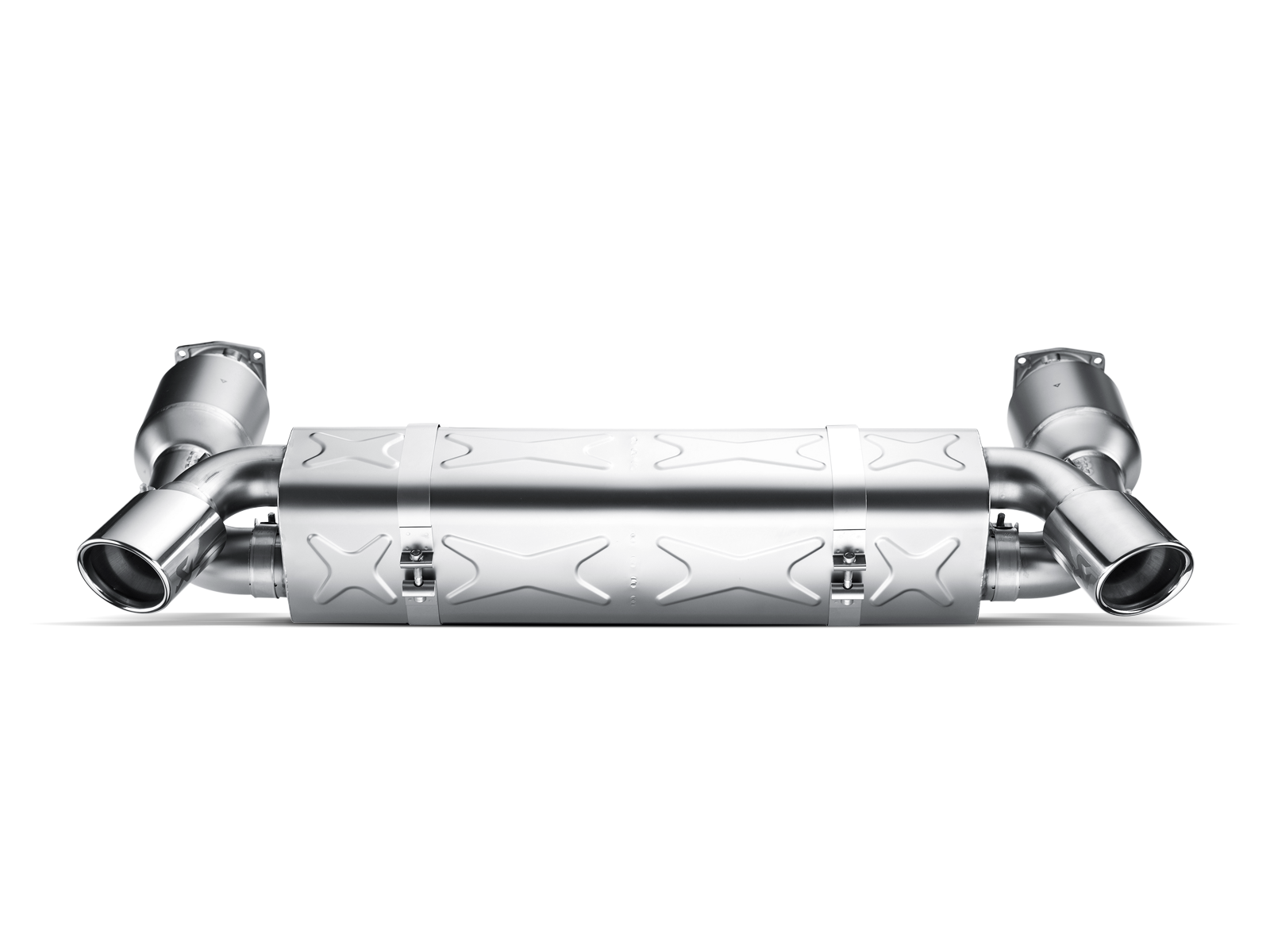 This car exhibits Porsche’s advanced technology, which is demonstrated in its ceramic composite brakes, maximum engine power with twin turbines, and variable turbine geometry, but especially in its uncompromising lightweight components. The GT2 is the first Porsche to be factory equipped with a titanium exhaust system. We developed a real “sport-exhaust version” for this super sports car. Our requirements were very simple: a lighter, more powerful, and better sounding exhaust system. Two high-flow 100 cpsi metallic cats, larger tube diameters-measuring not 55 but 60 mm-and reduced power-consuming back pressure. This resulted in a power increase, a torque increase, and weight savings. Complete the look with a set of exquisite titanium tailpipes. When installing Akrapovič aftermarket optional down pipes with sports catalytic converters or without catalytic converters, which are developed for use on closed tracks only, remapping the ECU is mandatory. When installing Akrapovič aftermarket exhaust system that was developed for use on closed tracks, we recommend remapping the ECU in order to prevent potential »check engine light« warning signals.
