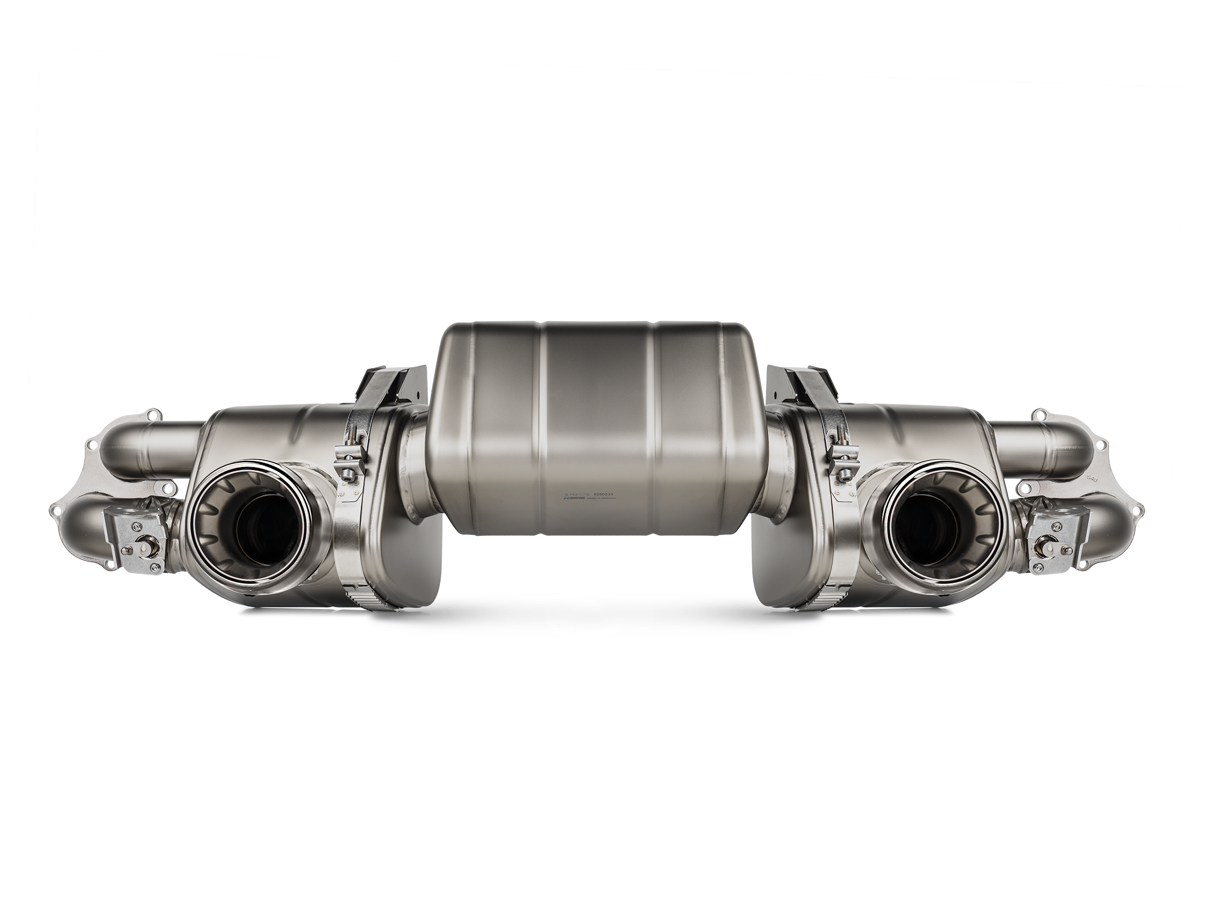 Fitment notice: A modification of fitting brackets done by Porsche on 718 GT4/Spyder produced approximately after February 2020 was identified. Please turn to your Area sales manager for detailed explanation on differences in order to choose the appropriate exhaust for your car.