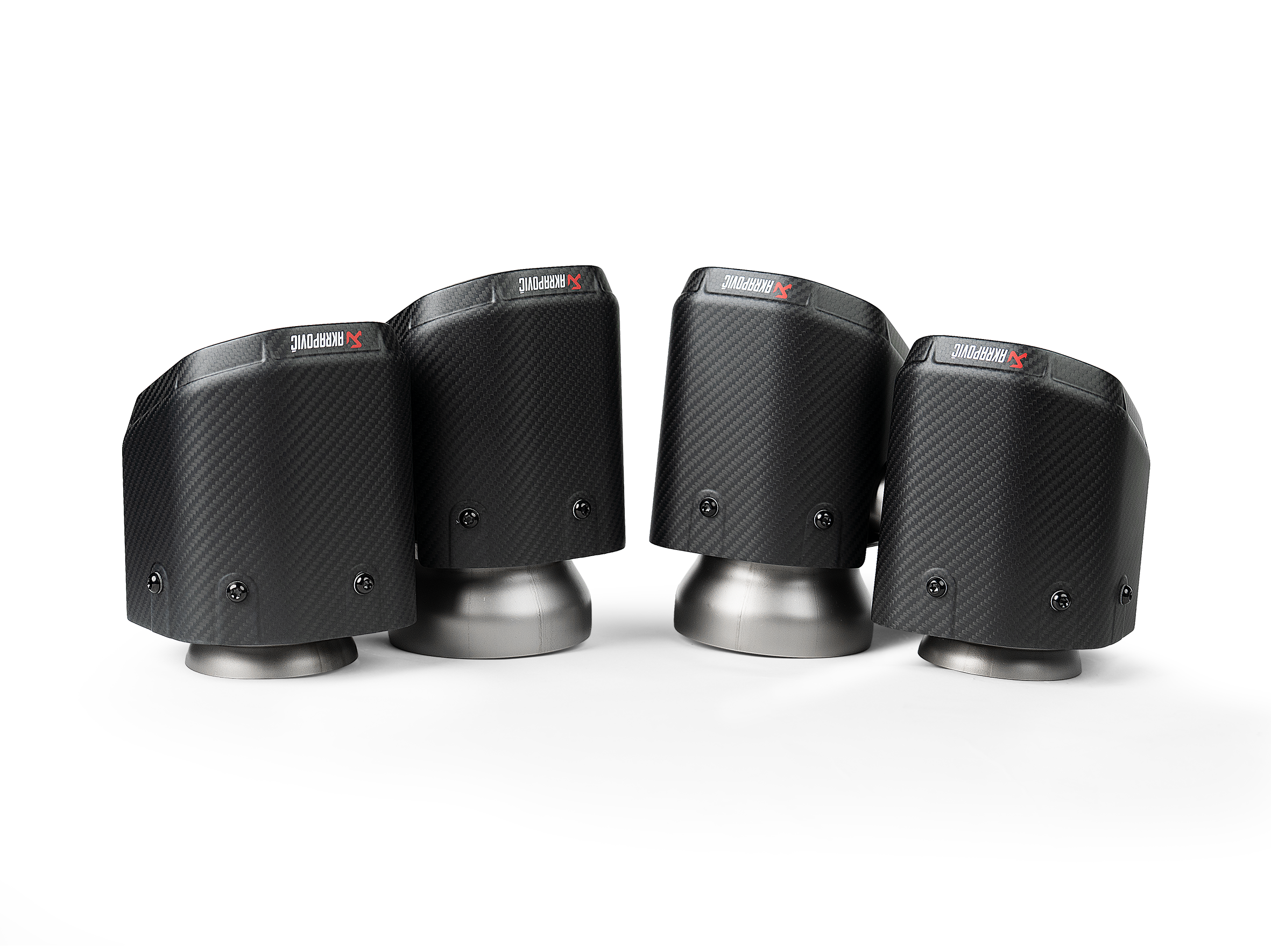This set features lightweight titanium tailpipes with a hand-made carbon-fibre outer sleeve. The hexagonal shape is a completely new design, making a clear statement that it has been developed for the BMW M5. The tailpipes come with integrated acoustic reflectors, which reflect part of the external sound toward the cabin and enhance the overall acoustic experience of an Akrapovič exhaust system. They are constructed from race-proven materials.