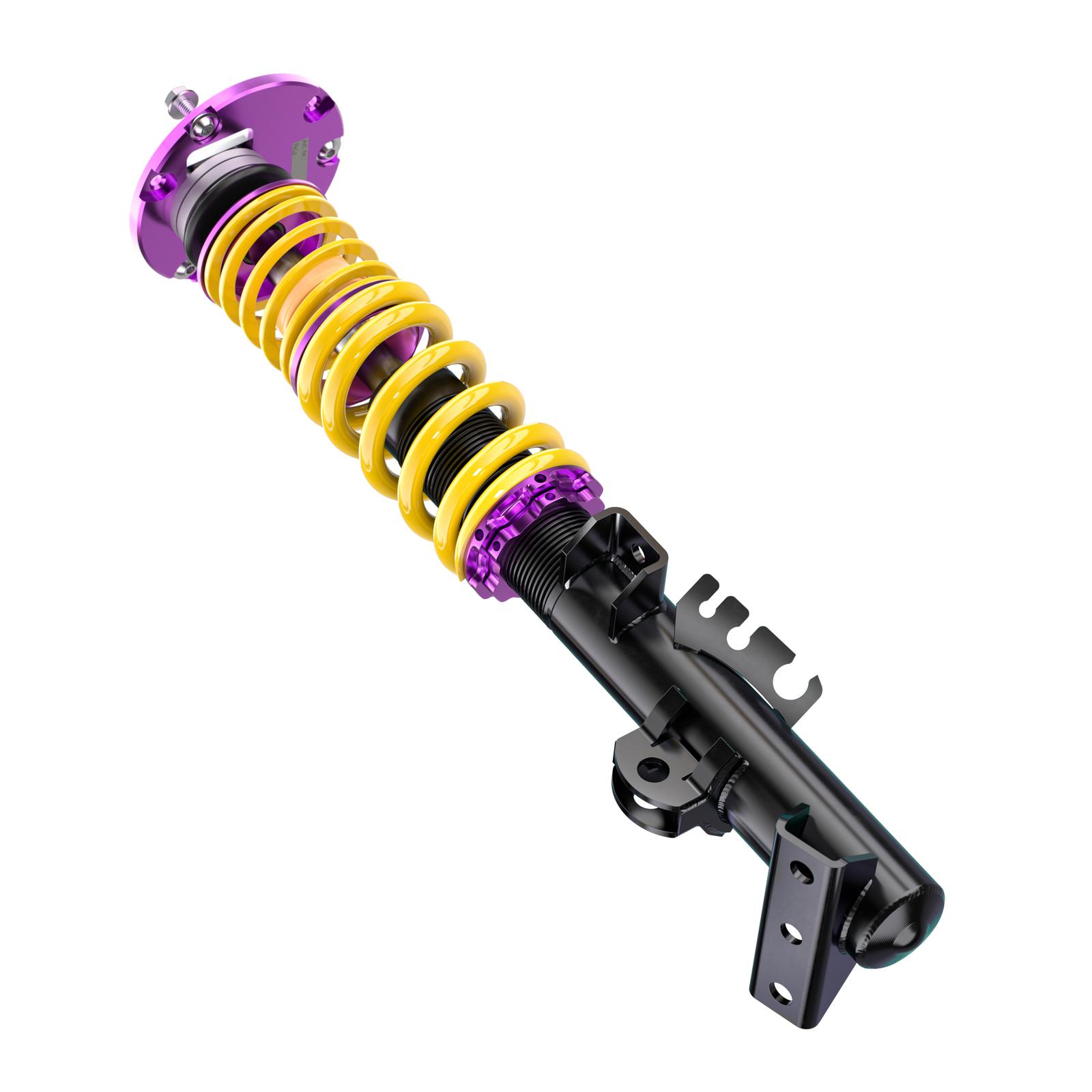 Das KW V1 Racing ist ein Rennsportfahrwerk und perfekt auf das jeweilige Fahrzeug abgestimmt. Auf Basis unserer jahrzehntelangen Erfahrung und zahlreichen Testdaten liefern wir das KW V1 Racing mit fester Druck- und Zugstufenkennung aus. Um das ideale Einsteigerfahrwerk für die Rennstrecke bieten zu können, haben wir im Rahmen des Entwicklungsprozesses besonders hohen Wert auf die Punkte Achsgeometrie, Bodenfreiheit, Dämpfungsmaß, Federraten, Federwege und Radlasten gelegt. Das KW V1 Racing kommt inklusive Domlager und ist in seiner Höhe einstellbar. Die Dämpfer bestehen aus verzinktem Stahl für optimierte Stabilität auf der Rennstrecke.