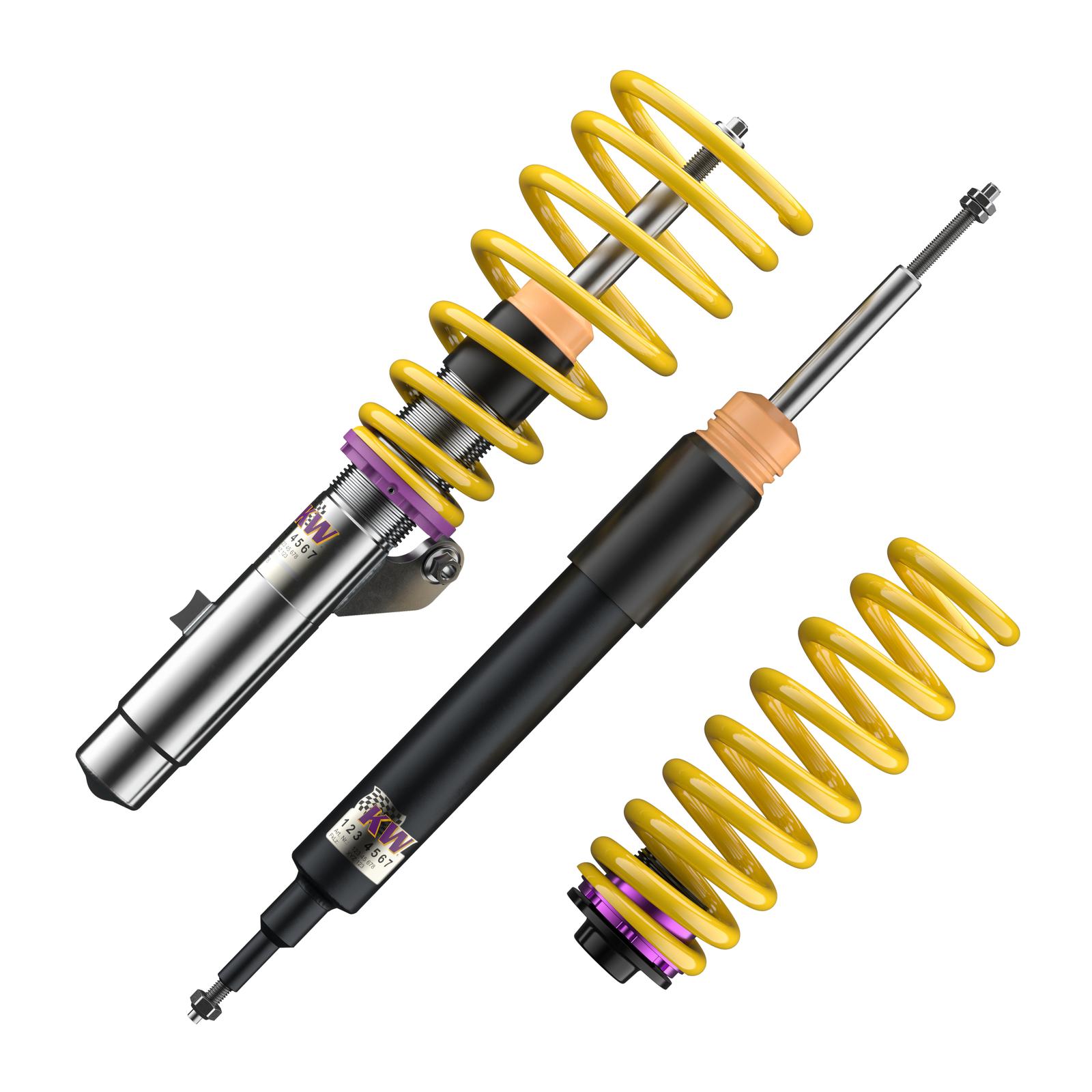 Ob auf langen Strecken auf der Autobahn, oder vielen Kilometern auf zügig gefahrenen Landstraßen, mit dem KW V2 Comfort Gewindefahrwerk genießen Sie eine komfortable Abstimmung. Die kürzeren KW Dämpfergehäuse ermöglichen trotz der Tieferlegung einen komfortablen Restfederweg. Beim KW V2 Comfort Gewindefahrwerk sind die verwendeten Dämpfer, Gehäuse, Federn sowie die komfortorientierte Dämpfercharakteristik fahrzeugspezifisch perfekt aufeinander abgestimmt. Zusätzlich erlaubt Ihnen das KW V2 Comfort Gewindefahrwerk die Zugstufendämpfung individuell auf Ihre Fahrweise und Ihr Komfortempfinden weiter zu justieren.
