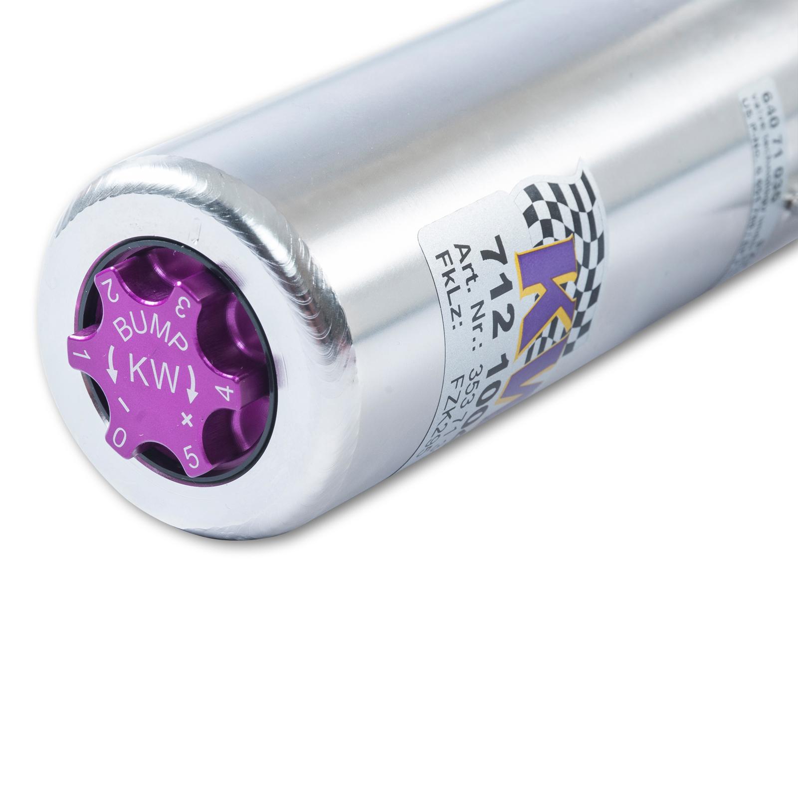 Mit den Einstellrädchen für die Zugkraftabstimmung können Sie mit 16 exakten Klicks das empfohlene Grundsetup für Ihren Sportwagen und Ihre individuell installierten Performance-Komponenten feinabstimmen. So können Sie direkten Einfluss auf geänderte Radlasten nehmen, um beispielsweise Karosserieaufbaubewegungen zu beeinflussen. Getrennt von der Zugstufenabstimmung ist es mit dem KW V3 Clubsport möglich, die Druckstufe mit zwölf exakten Klicks im Lowspeed-Bereich auf Ihre Anforderungen, wie etwa dem verwendeten Sportreifen einzustellen.