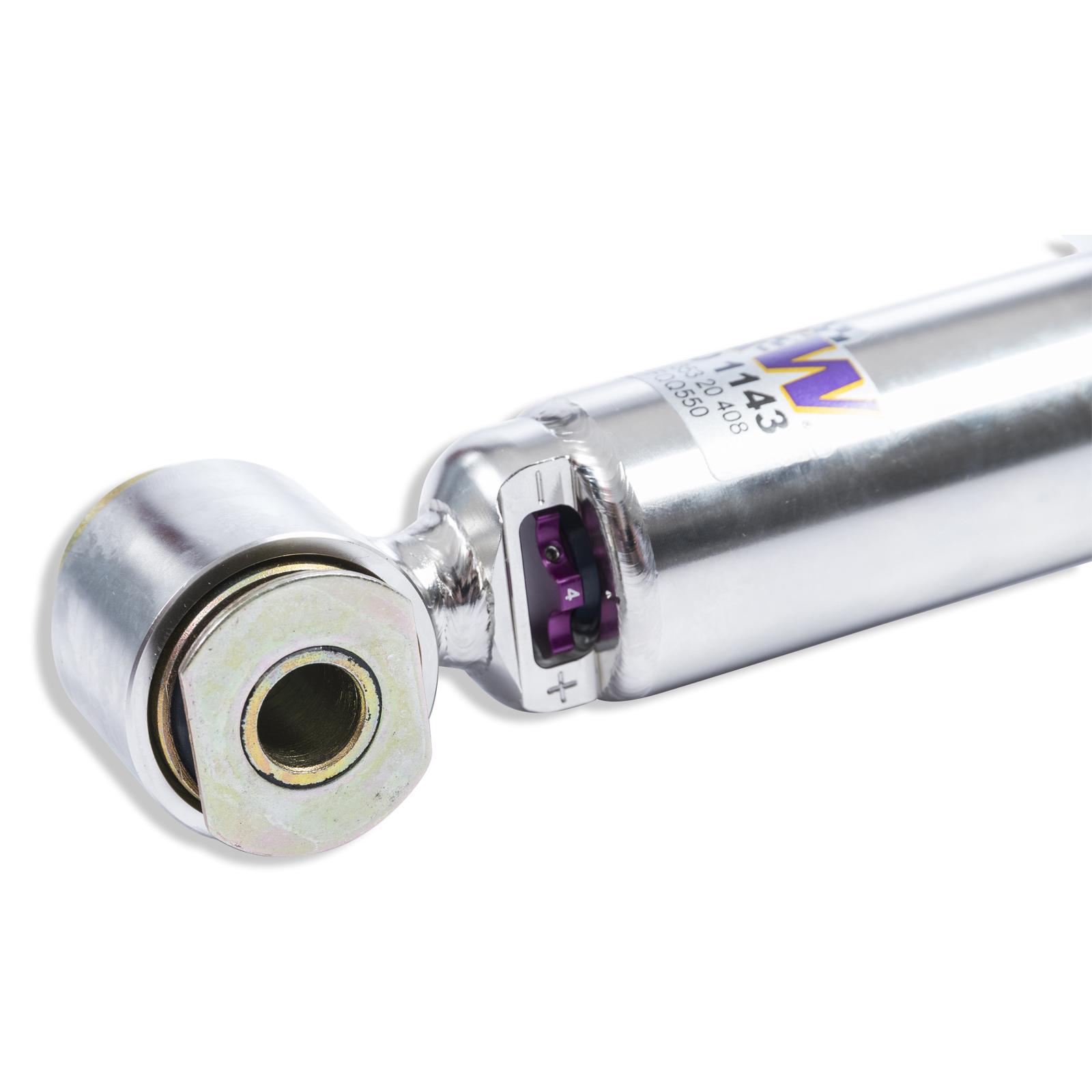 Indem Sie über das Einstellrädchen die Zugkraft erhöhen, verringern sich die Aufbaubewegungen an der Karosserie. Ihr Auto fährt sich dadurch spurtreuer und Sie haben bei erhöhten Kurvengeschwindigkeiten noch mehr Stabilität. Wechseln Sie beispielsweise von den freigegebenen Rad/Reifenkombinationen Ihres Automobilherstellers zu größeren Felgen, können Sie mit dem KW V3 das Fahrverhalten Ihres Autos und Ihrer neuen Leichtmetallräder perfekt aufeinander abstimmen.