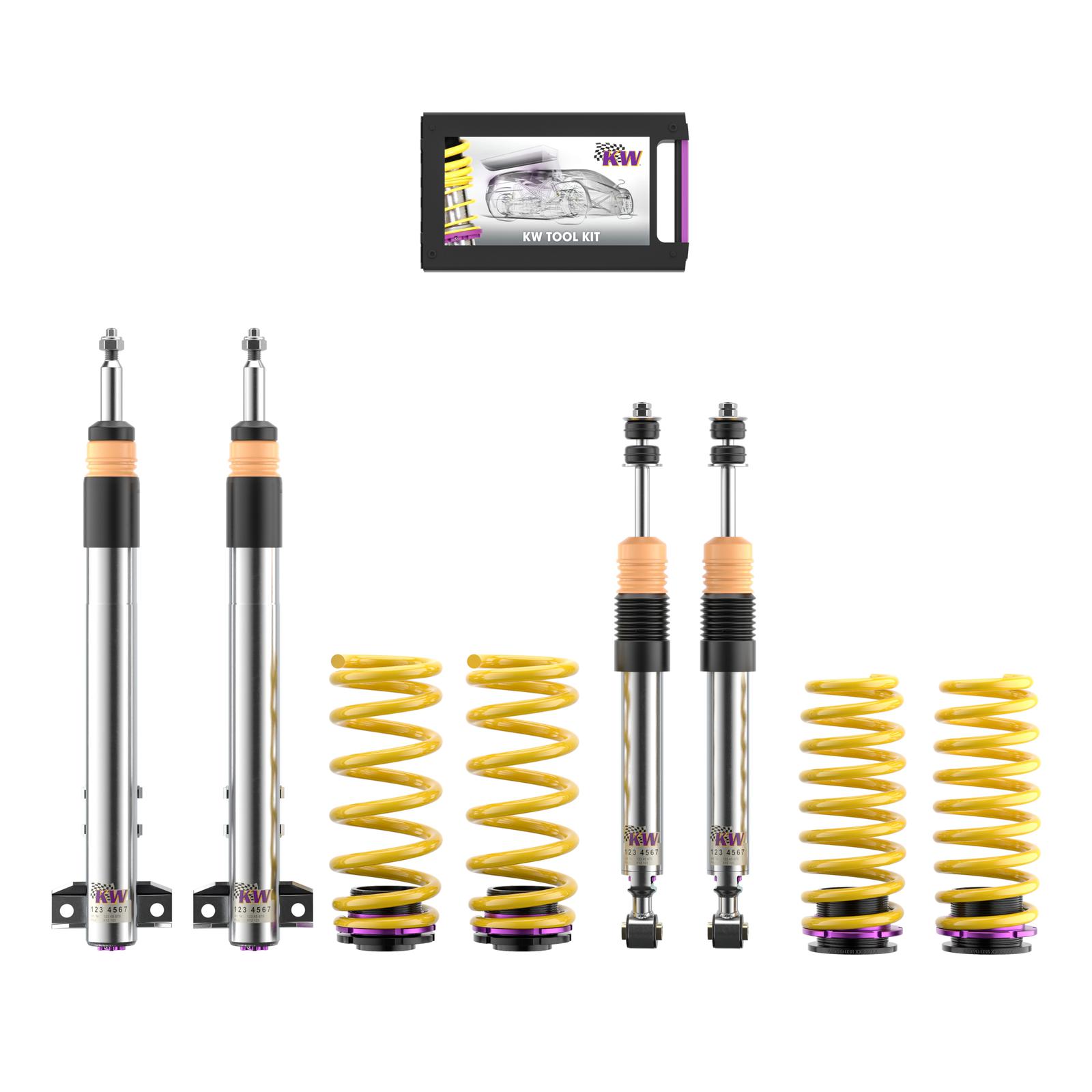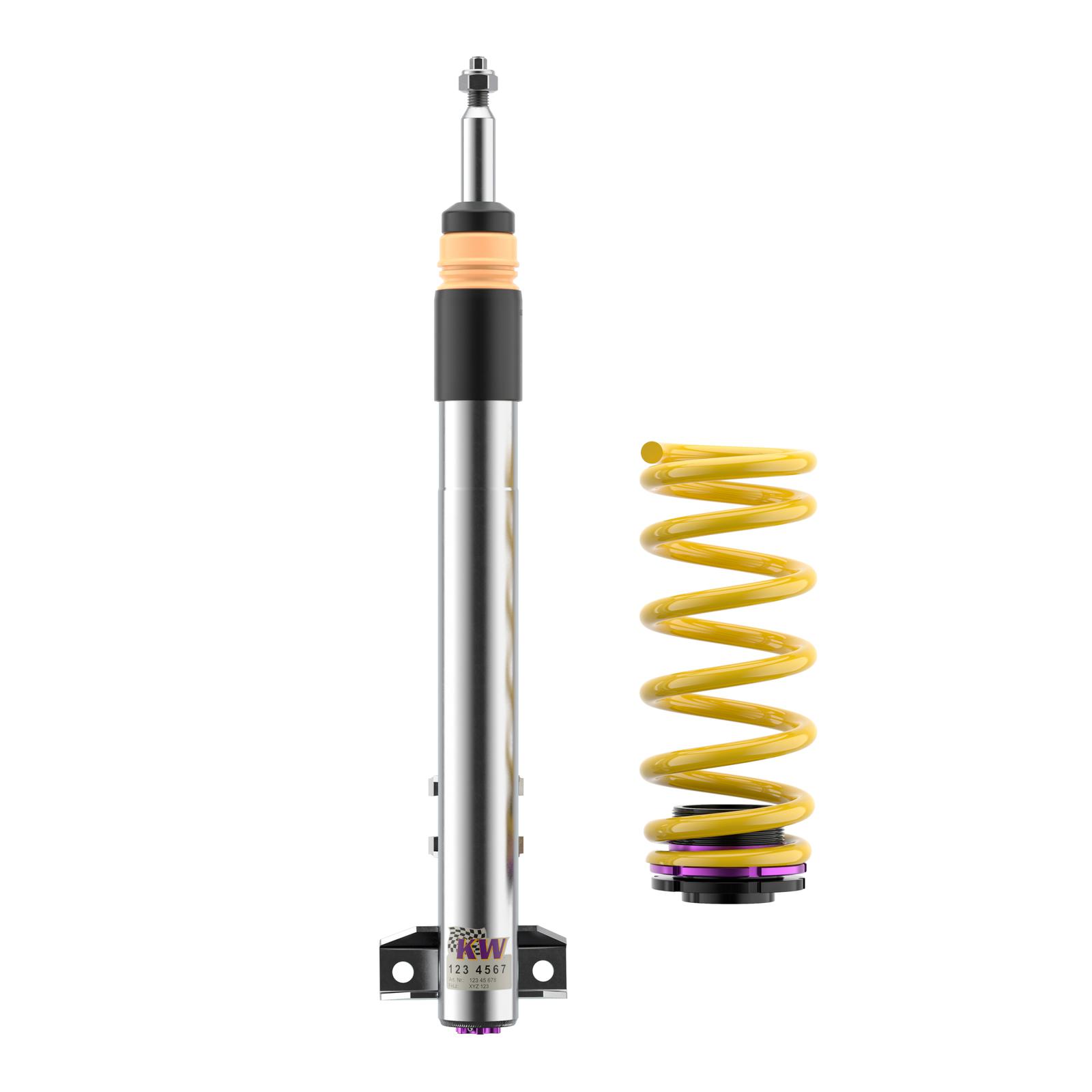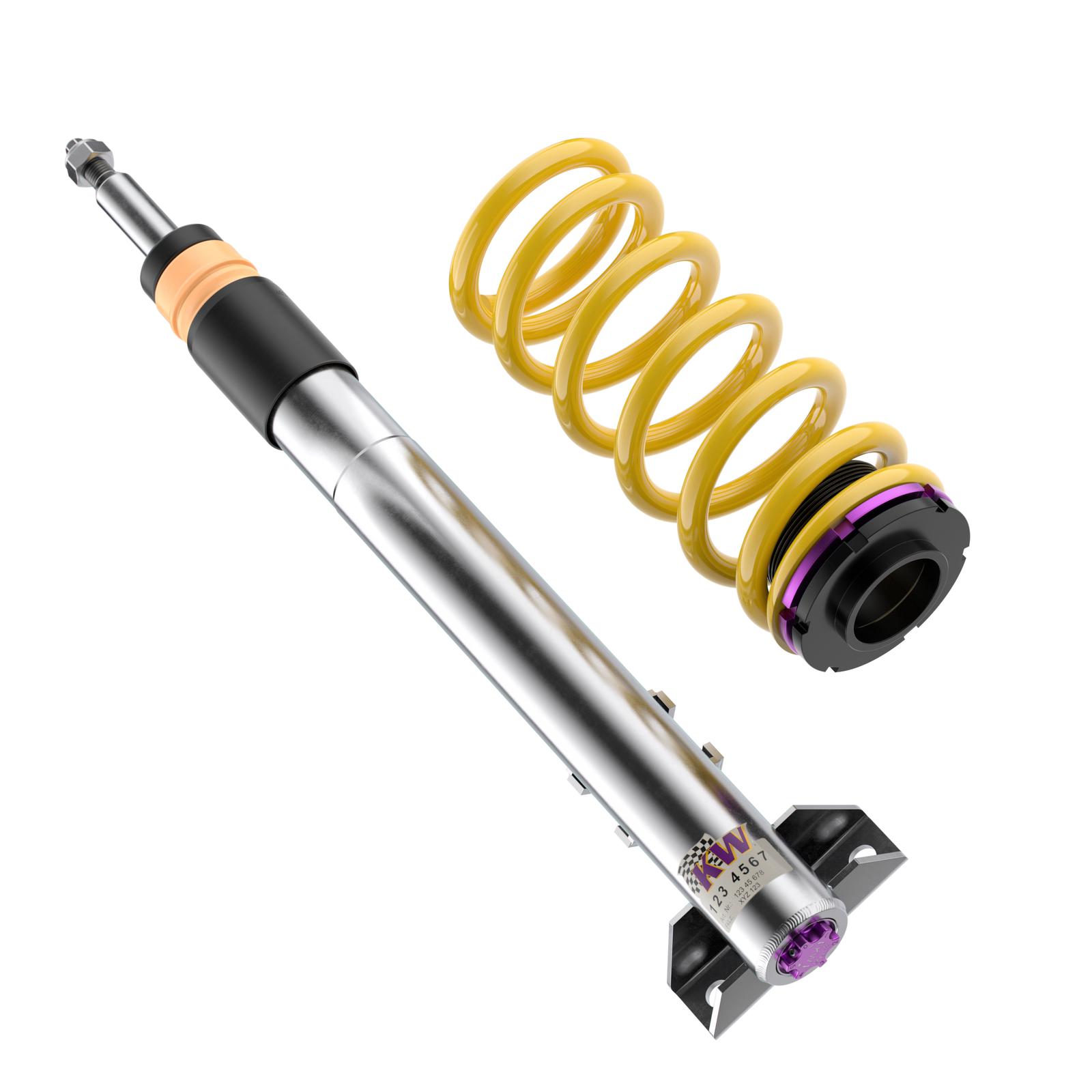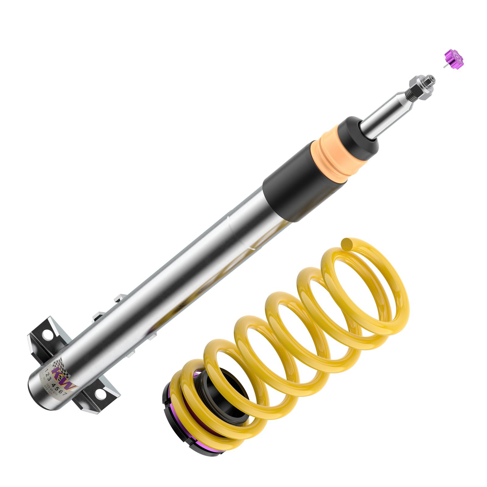 Das KW V3 ist das ideale Zubehör für Performance-orientierte Autofahrer und Tuningenthusiasten, die bei ihren Fahrzeugen einen großen Anspruch auf Sportlichkeit legen. Die separat in Zug- und Druckstufe einstellbaren Dämpfer erlauben dabei, mit ihrer durchdachten Klickverstellung eine umfangreiche Dämpferabstimmung vorzunehmen. So ist es ein Leichtes das Einlenkverhalten, die Spurtreue, den Reifengrip und Handling-Eigenschaften maßgeblich für eine sichere Kontrollierbarkeit im Grenzbereich direkt zu beeinflussen.
