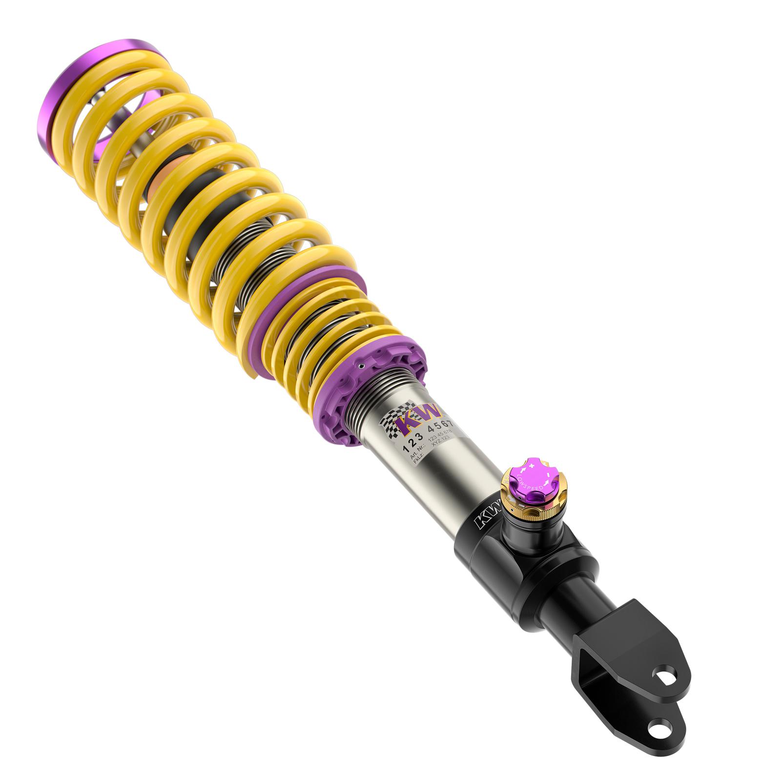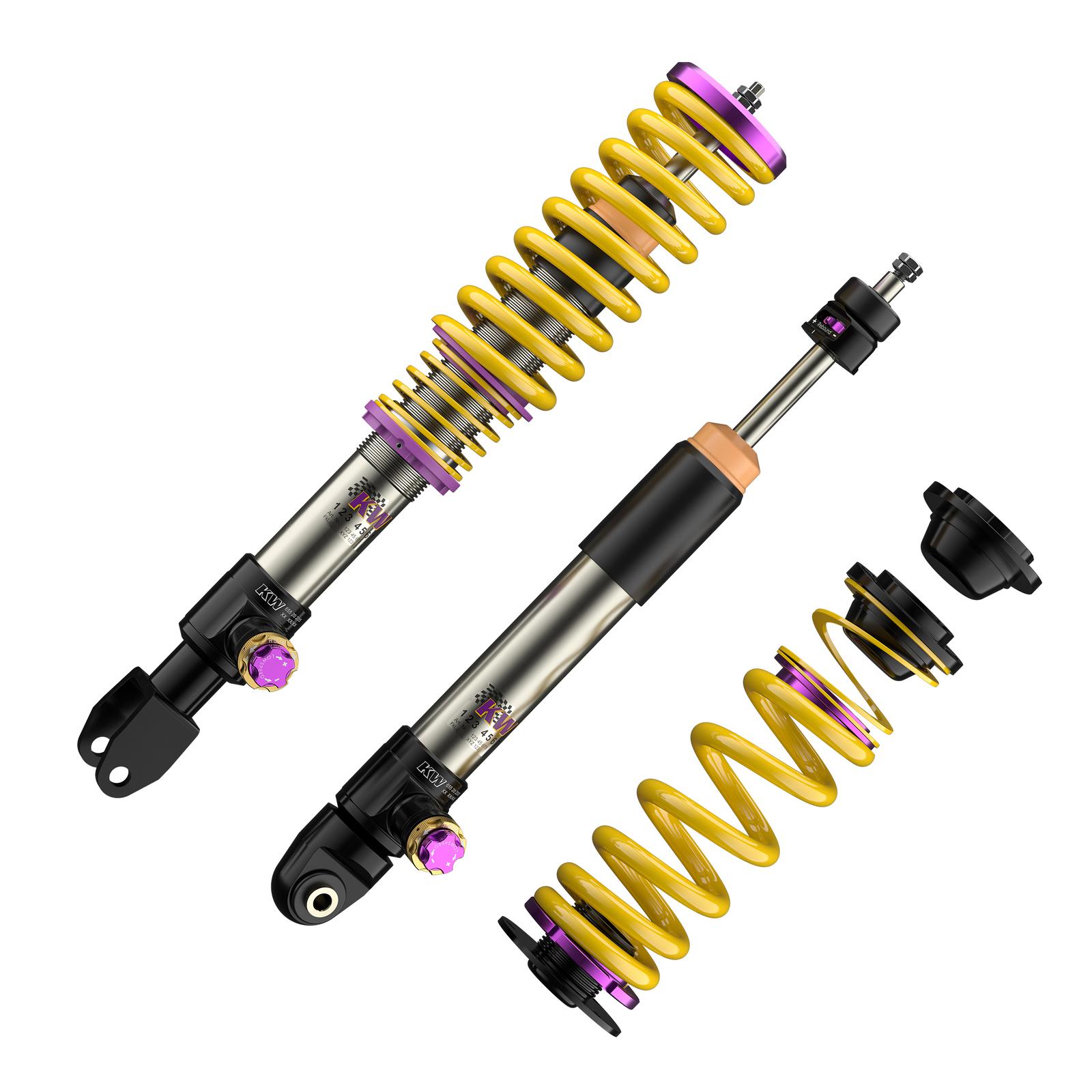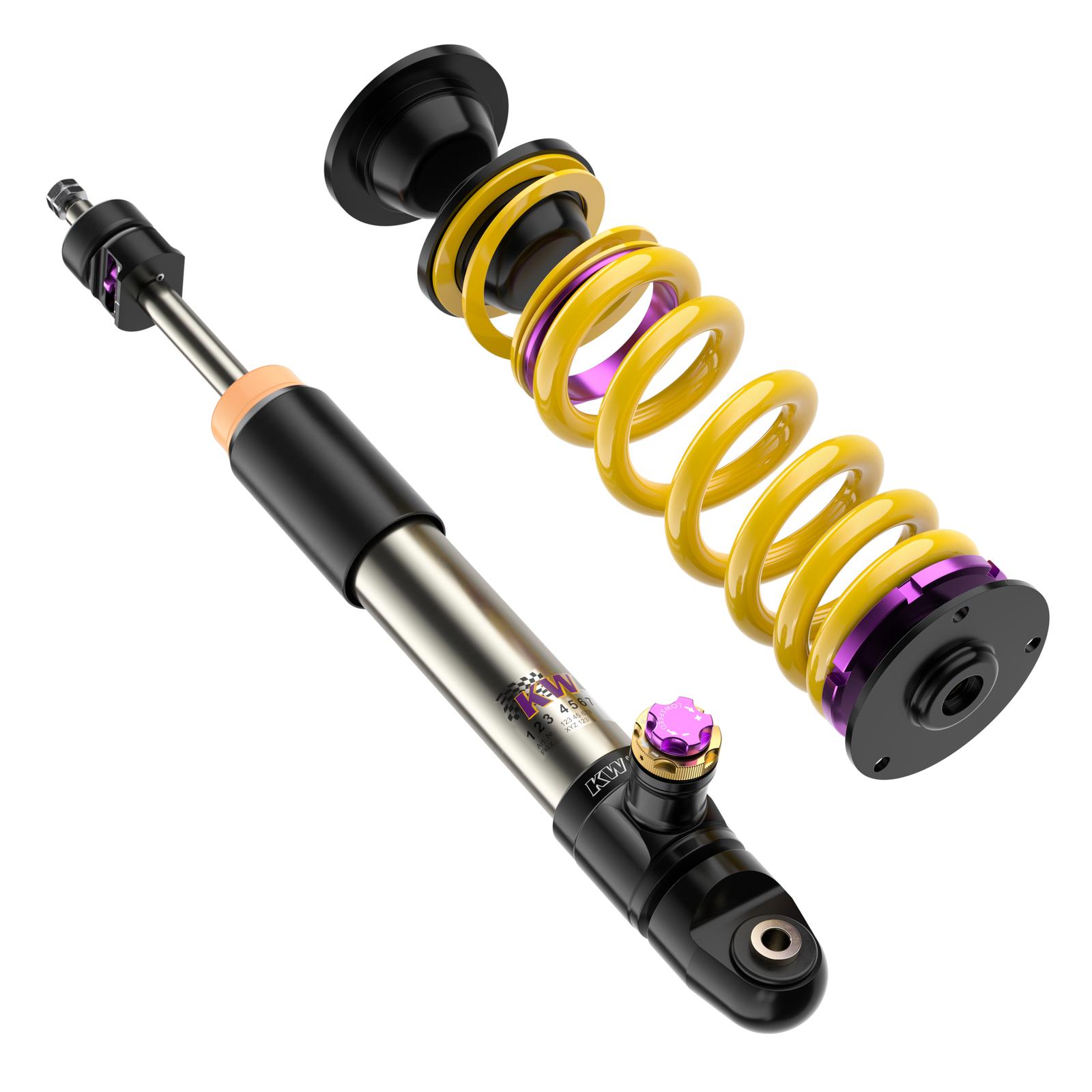Mit dem neuen KW V4 mit seinen Gewindefederbeinen aus Edelstahl oder Aluminium verleihen Sie Ihrem Supersportwagen die notwendigen Reserven, um die Fahrdynamik weiter zu steigern. Die dreifach einstellbaren High-Performance-Dämpfer mit ihrer unabhängigen Einstellung der Zugstufe sowie Lowspeed- und Highspeed-Druckstufendämpfung basiert auf die erfolgreiche Rennsporttechnologie des mehrfachen Gesamtsiegers das ADAC Zurich 24h-Rennen Nürburgring und verfügen je nach fahrzeugspezifischer Ausführung über Aluminiumstützlager. Das neue KW V4 wird ausschließlich für ausgewählte High-Performance-Fahrzeuge entwickelt, die durch unsere KW Fahrwerktechnologie im fahrdynamischen Grenzbereich sicherer bewegt werden können.