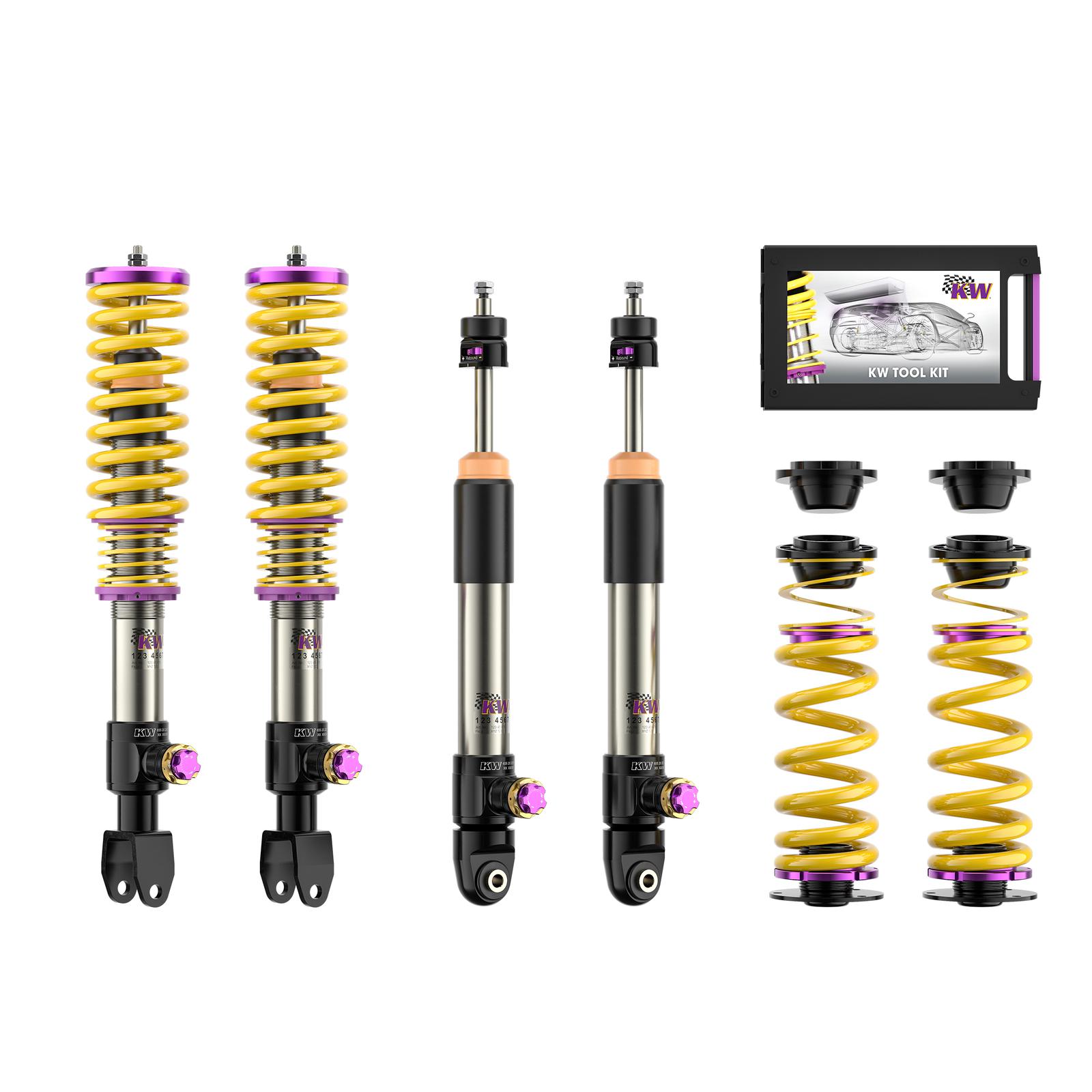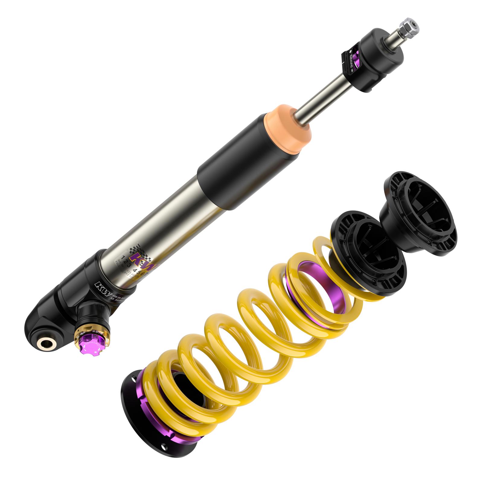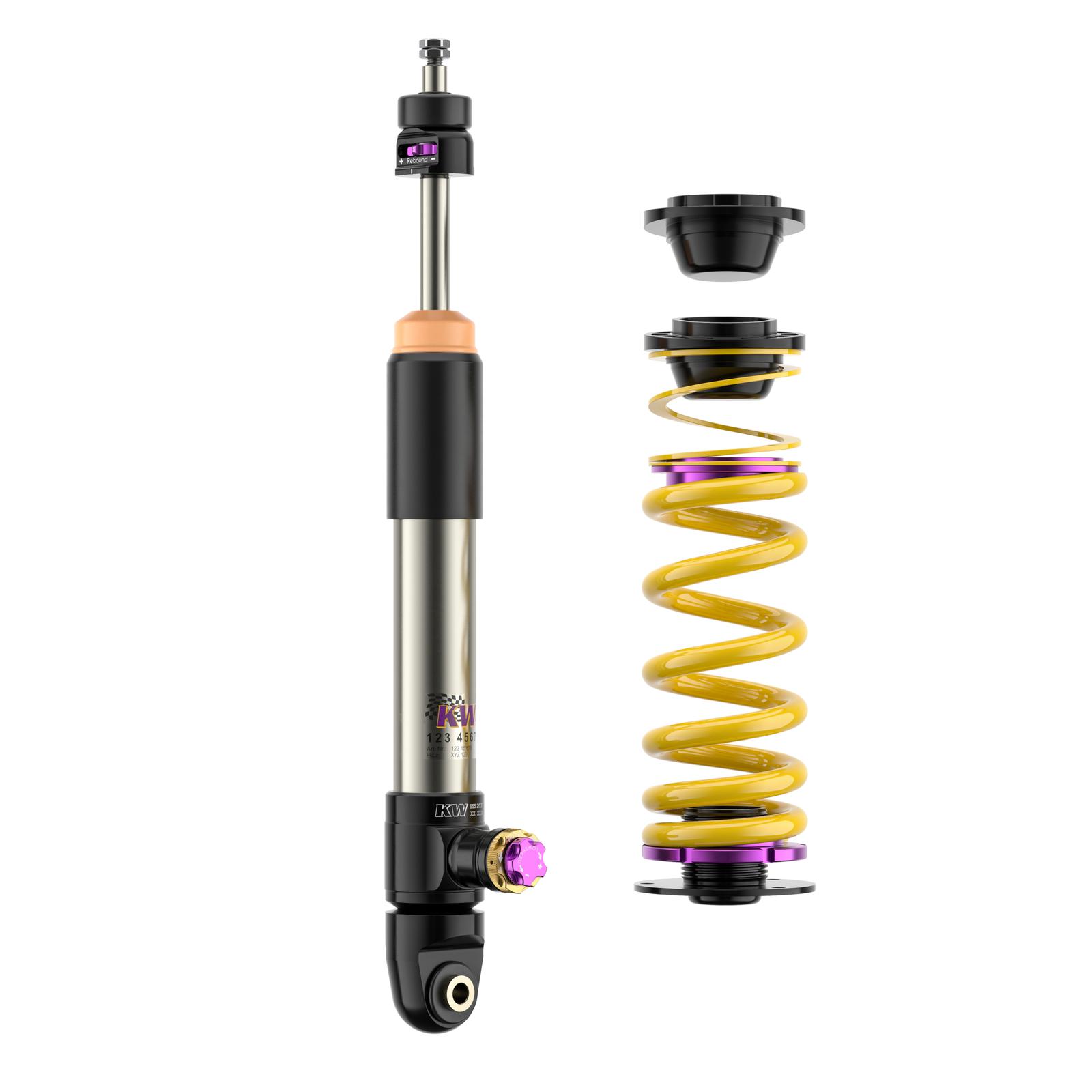 Mit dem neuen KW V4 mit seinen Gewindefederbeinen aus Edelstahl oder Aluminium verleihen Sie Ihrem Supersportwagen die notwendigen Reserven, um die Fahrdynamik weiter zu steigern. Die dreifach einstellbaren High-Performance-Dämpfer mit ihrer unabhängigen Einstellung der Zugstufe sowie Lowspeed- und Highspeed-Druckstufendämpfung basiert auf die erfolgreiche Rennsporttechnologie des mehrfachen Gesamtsiegers das ADAC Zurich 24h-Rennen Nürburgring und verfügen je nach fahrzeugspezifischer Ausführung über Aluminiumstützlager. Das neue KW V4 wird ausschließlich für ausgewählte High-Performance-Fahrzeuge entwickelt, die durch unsere KW Fahrwerktechnologie im fahrdynamischen Grenzbereich sicherer bewegt werden können.