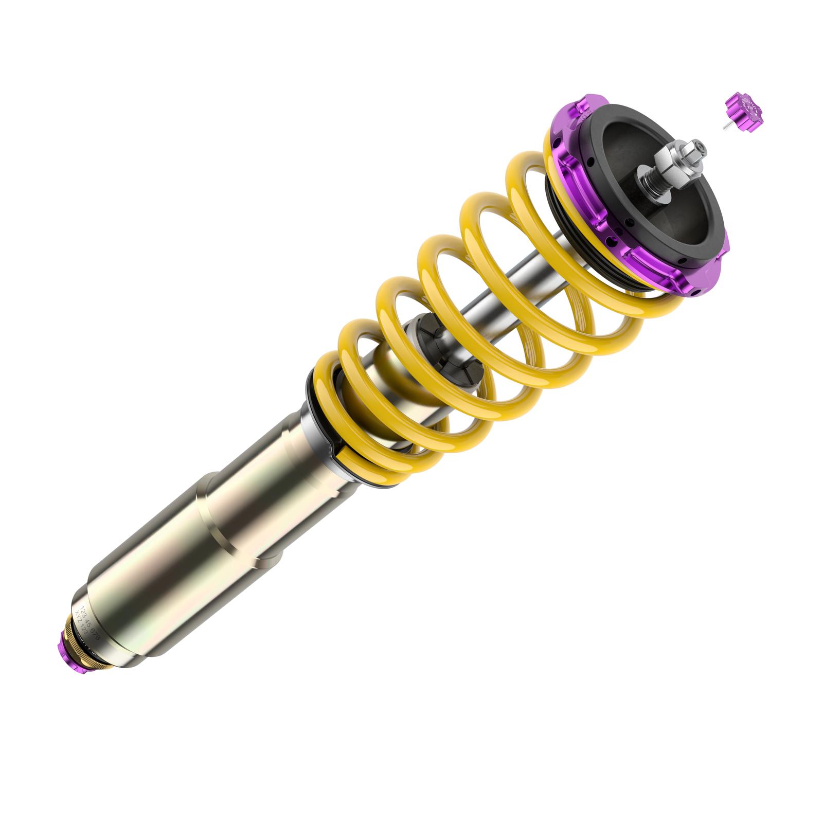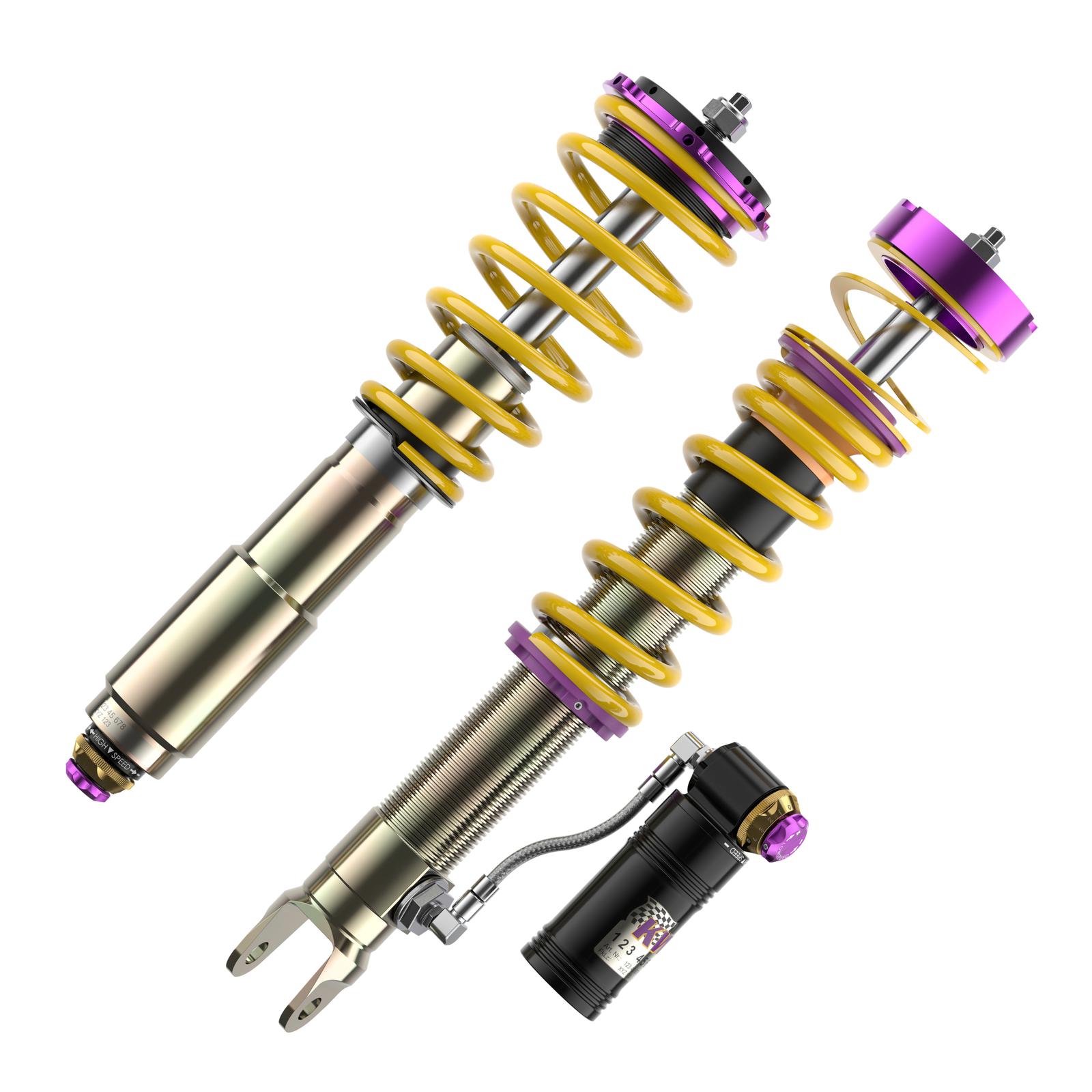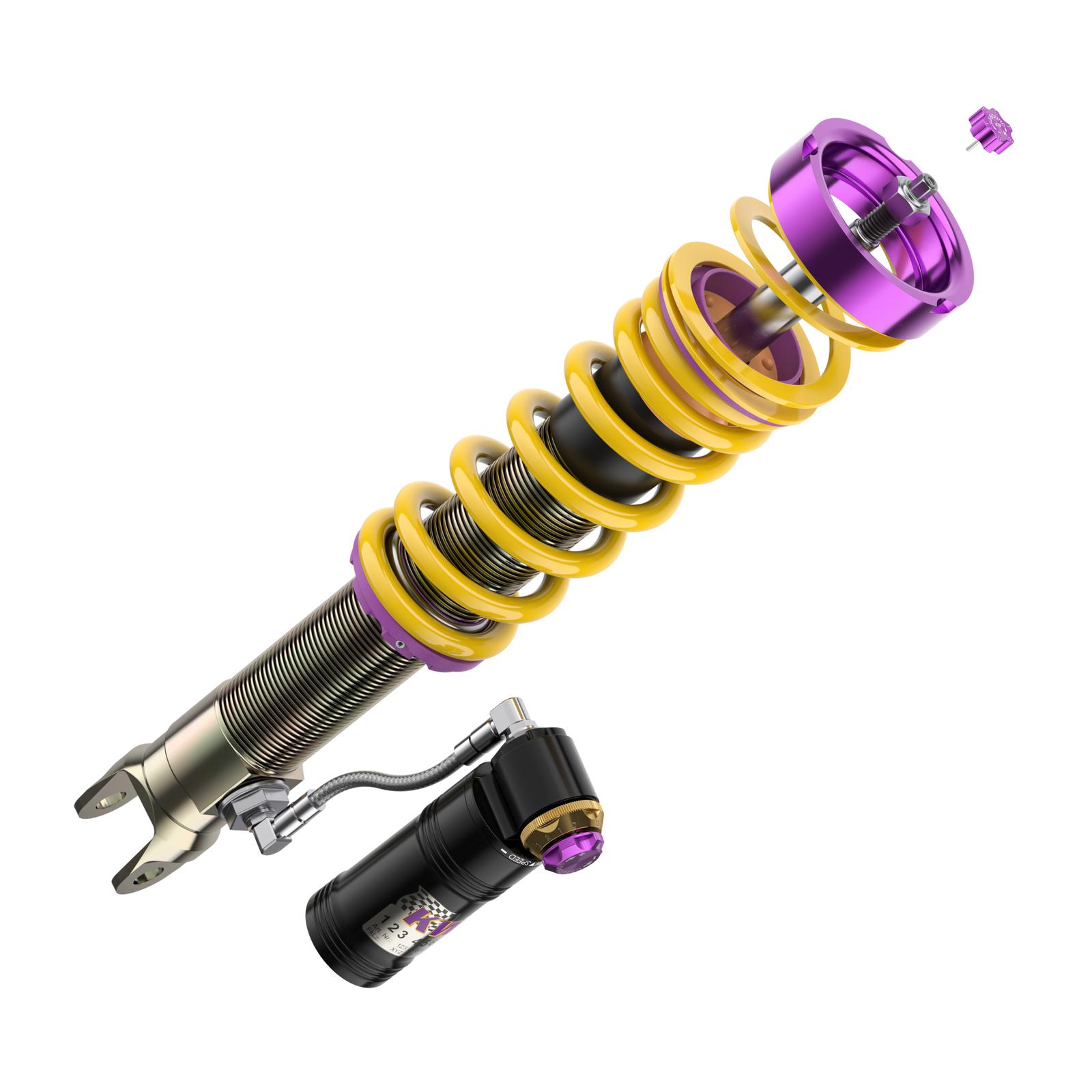 Mit dem neuen KW V4 mit seinen Gewindefederbeinen aus Edelstahl oder Aluminium verleihen Sie Ihrem Supersportwagen die notwendigen Reserven, um die Fahrdynamik weiter zu steigern. Die dreifach einstellbaren High-Performance-Dämpfer mit ihrer unabhängigen Einstellung der Zugstufe sowie Lowspeed- und Highspeed-Druckstufendämpfung basiert auf die erfolgreiche Rennsporttechnologie des mehrfachen Gesamtsiegers das ADAC Zurich 24h-Rennen Nürburgring und verfügen je nach fahrzeugspezifischer Ausführung über Aluminiumstützlager. Das neue KW V4 wird ausschließlich für ausgewählte High-Performance-Fahrzeuge entwickelt, die durch unsere KW Fahrwerktechnologie im fahrdynamischen Grenzbereich sicherer bewegt werden können.
