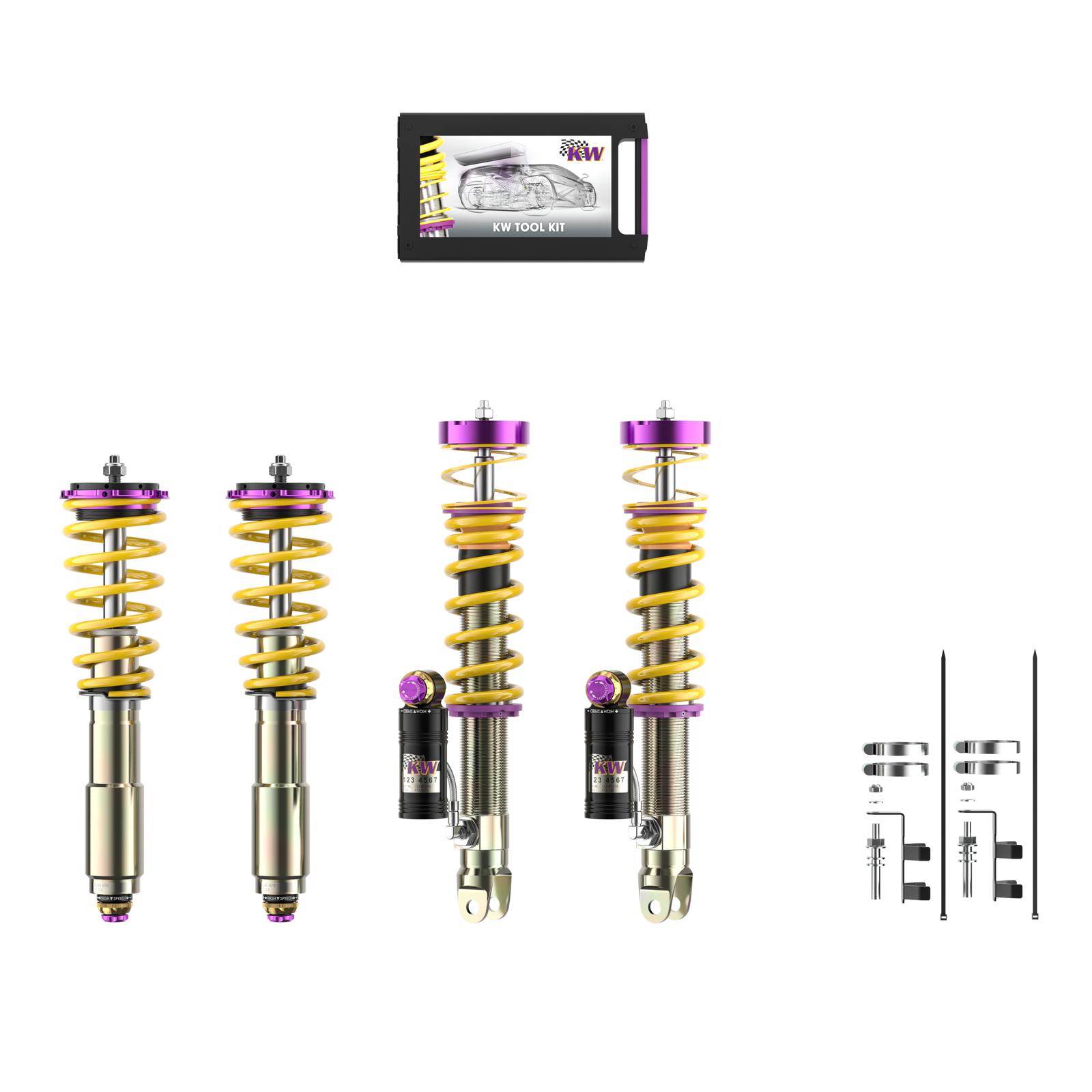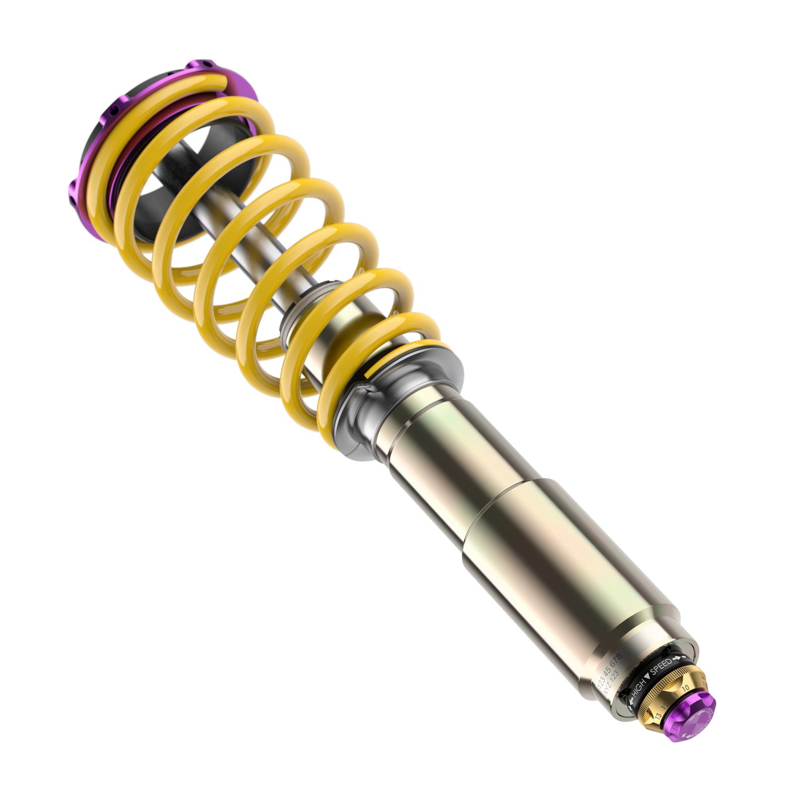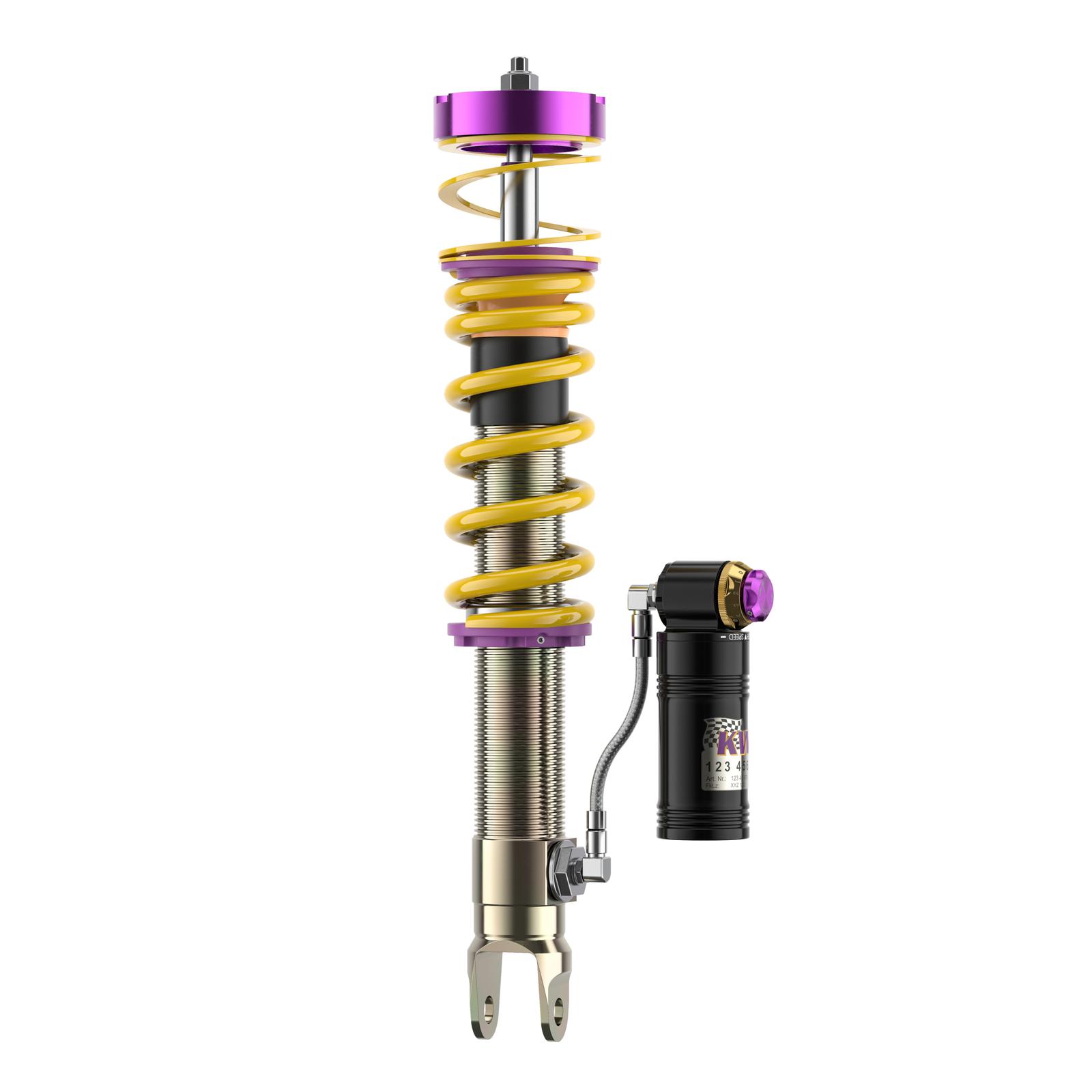 Mit dem neuen KW V4 mit seinen Gewindefederbeinen aus Edelstahl oder Aluminium verleihen Sie Ihrem Supersportwagen die notwendigen Reserven, um die Fahrdynamik weiter zu steigern. Die dreifach einstellbaren High-Performance-Dämpfer mit ihrer unabhängigen Einstellung der Zugstufe sowie Lowspeed- und Highspeed-Druckstufendämpfung basiert auf die erfolgreiche Rennsporttechnologie des mehrfachen Gesamtsiegers das ADAC Zurich 24h-Rennen Nürburgring und verfügen je nach fahrzeugspezifischer Ausführung über Aluminiumstützlager. Das neue KW V4 wird ausschließlich für ausgewählte High-Performance-Fahrzeuge entwickelt, die durch unsere KW Fahrwerktechnologie im fahrdynamischen Grenzbereich sicherer bewegt werden können.