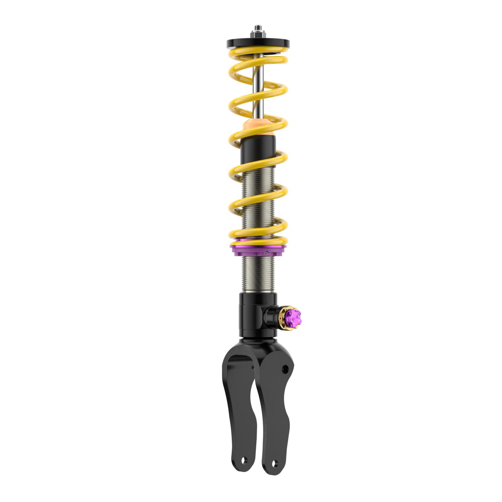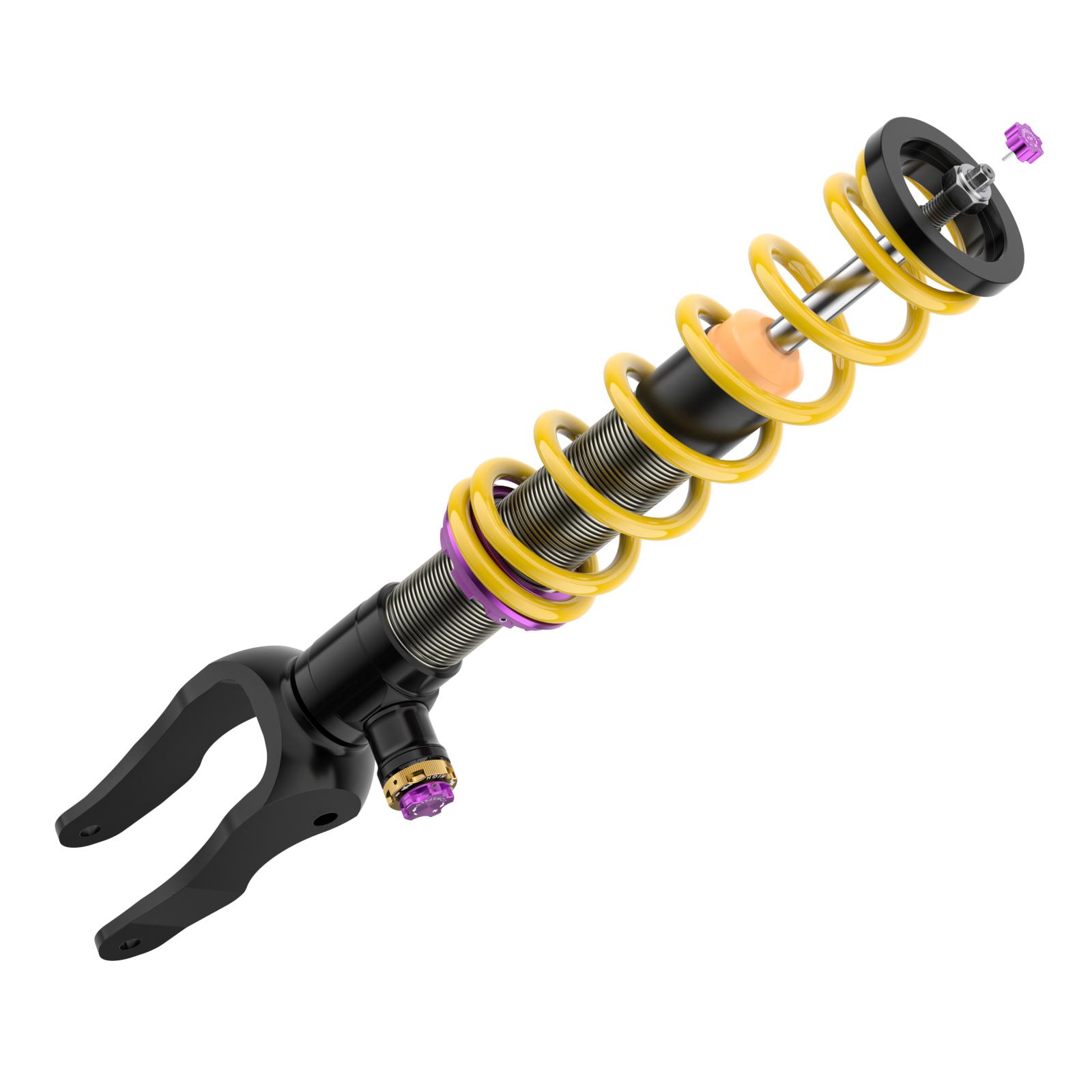 Mit dem neuen KW V4 mit seinen Gewindefederbeinen aus Edelstahl oder Aluminium verleihen Sie Ihrem Supersportwagen die notwendigen Reserven, um die Fahrdynamik weiter zu steigern. Die dreifach einstellbaren High-Performance-Dämpfer mit ihrer unabhängigen Einstellung der Zugstufe sowie Lowspeed- und Highspeed-Druckstufendämpfung basiert auf die erfolgreiche Rennsporttechnologie des mehrfachen Gesamtsiegers das ADAC Zurich 24h-Rennen Nürburgring und verfügen je nach fahrzeugspezifischer Ausführung über Aluminiumstützlager. Das neue KW V4 wird ausschließlich für ausgewählte High-Performance-Fahrzeuge entwickelt, die durch unsere KW Fahrwerktechnologie im fahrdynamischen Grenzbereich sicherer bewegt werden können.