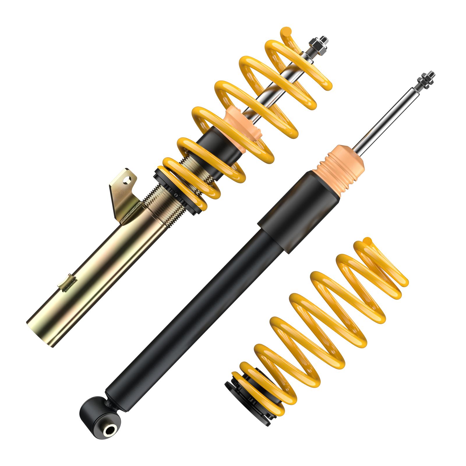 Die hochwertigen ST XA Gewindefahrwerke basieren auf dem Zweirohrdämpfungsprinzip in reibungsarmen und druckbeständigen Dämpfergehäusen. Dabei werden die Dämpfer direkt bei KW gefertigt. Ein Monoblock-Führungs- und Dichtungspaket reduziert im Dämpfer die Reibung beim Ein- und Austauchen der verchromten Kolbenstange. Dazu sorgen ein optimaler Korrosionsschutz und eine mehrfache Versiegelung des verzinkten Federbeins für einen langen Fahrspaß mit den ST XA Gewindefahrwerken.