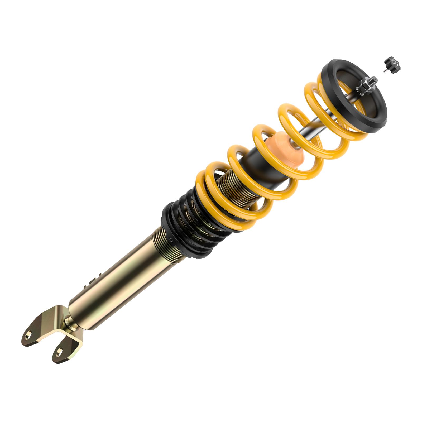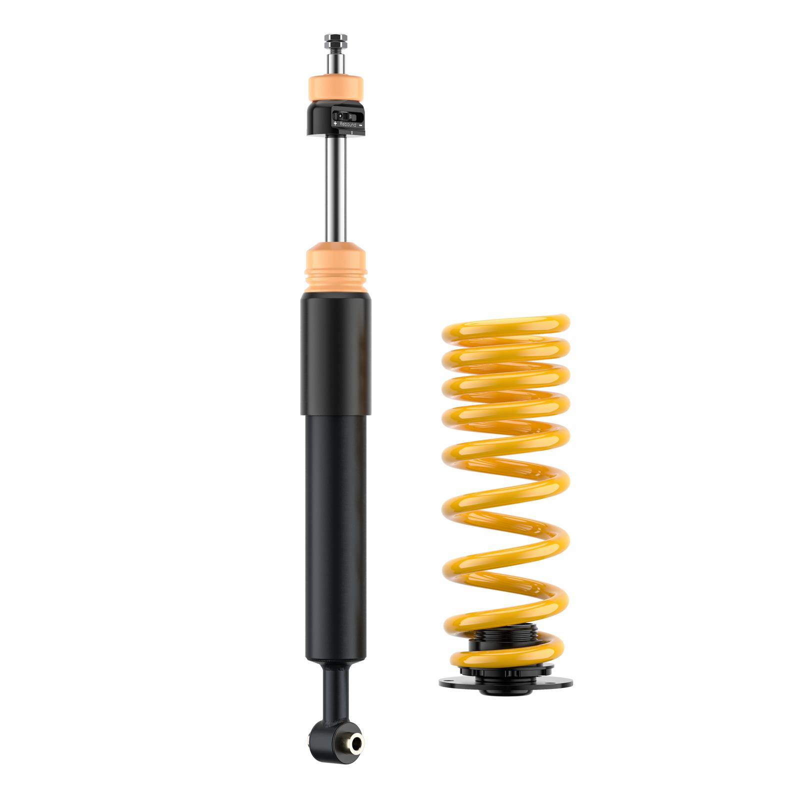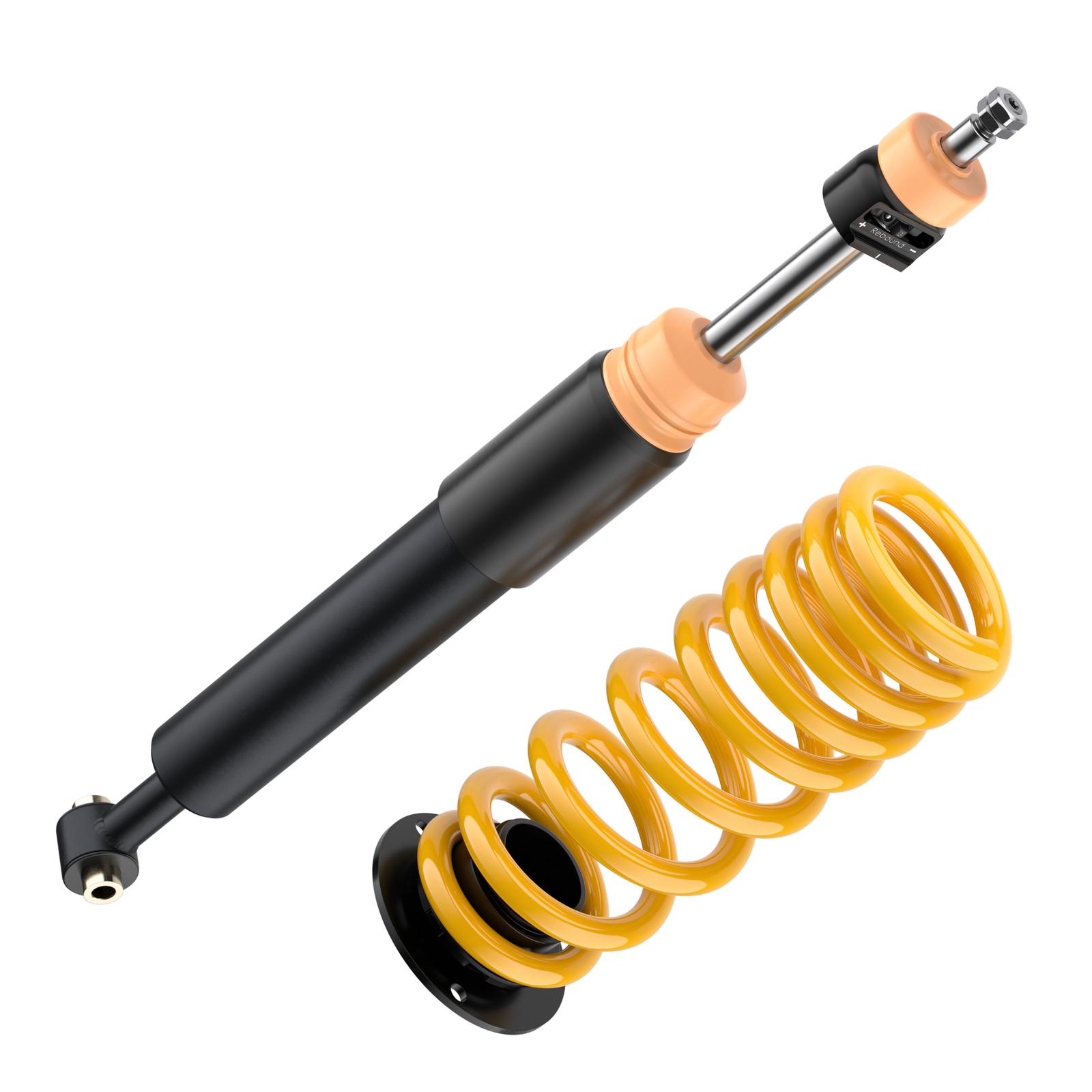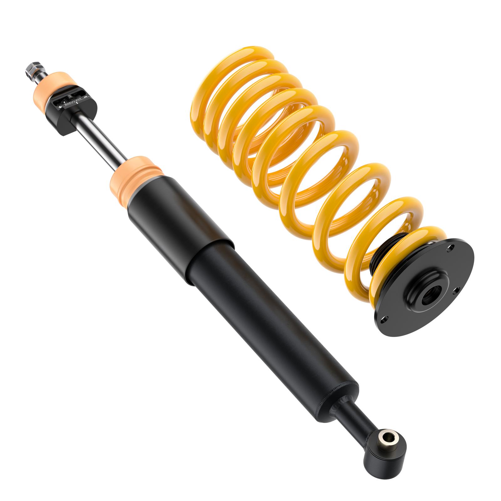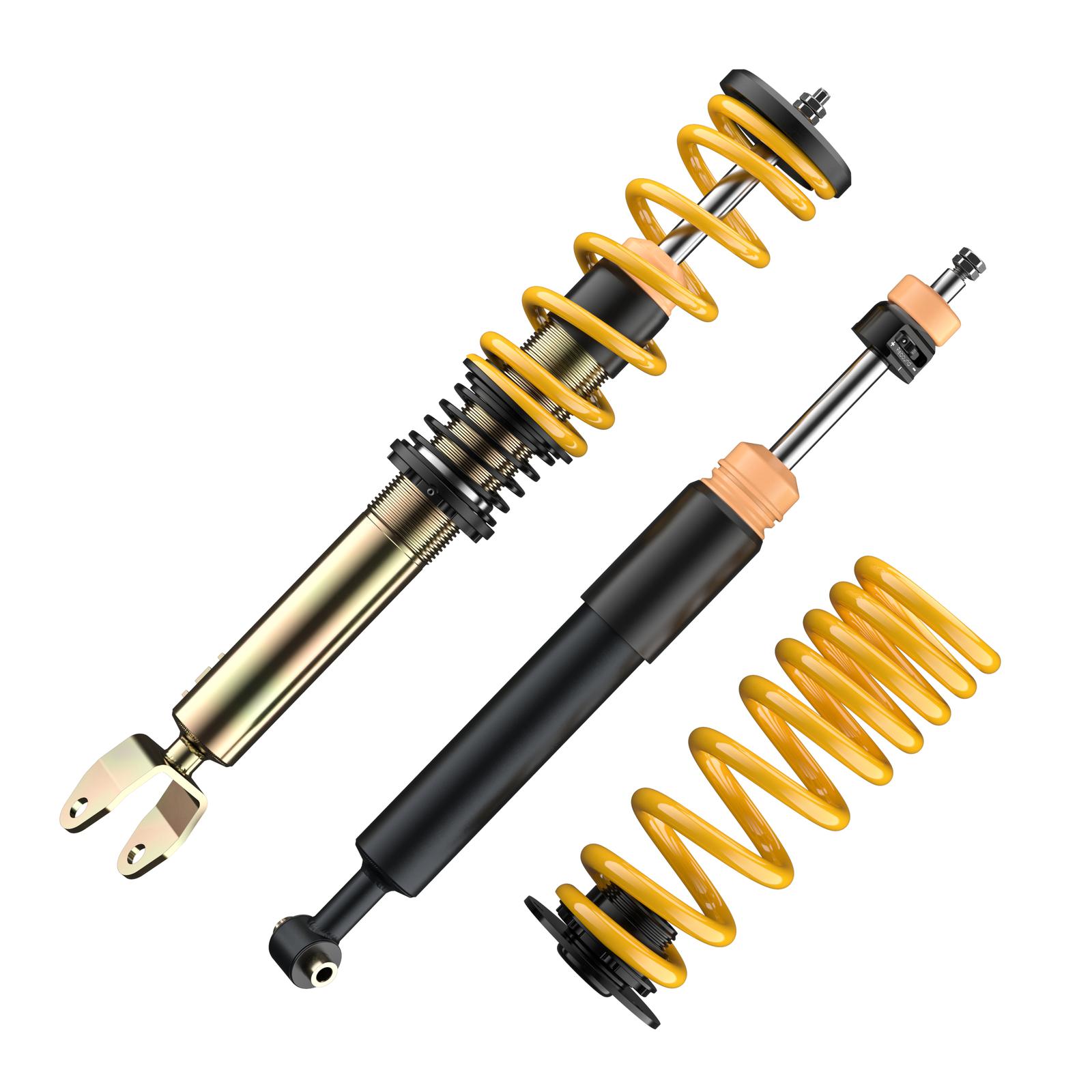 Die hochwertigen ST XA Gewindefahrwerke basieren auf dem Zweirohrdämpfungsprinzip in reibungsarmen und druckbeständigen Dämpfergehäusen. Dabei werden die Dämpfer direkt bei KW gefertigt. Ein Monoblock-Führungs- und Dichtungspaket reduziert im Dämpfer die Reibung beim Ein- und Austauchen der verchromten Kolbenstange. Dazu sorgen ein optimaler Korrosionsschutz und eine mehrfache Versiegelung des verzinkten Federbeins für einen langen Fahrspaß mit den ST XA Gewindefahrwerken.