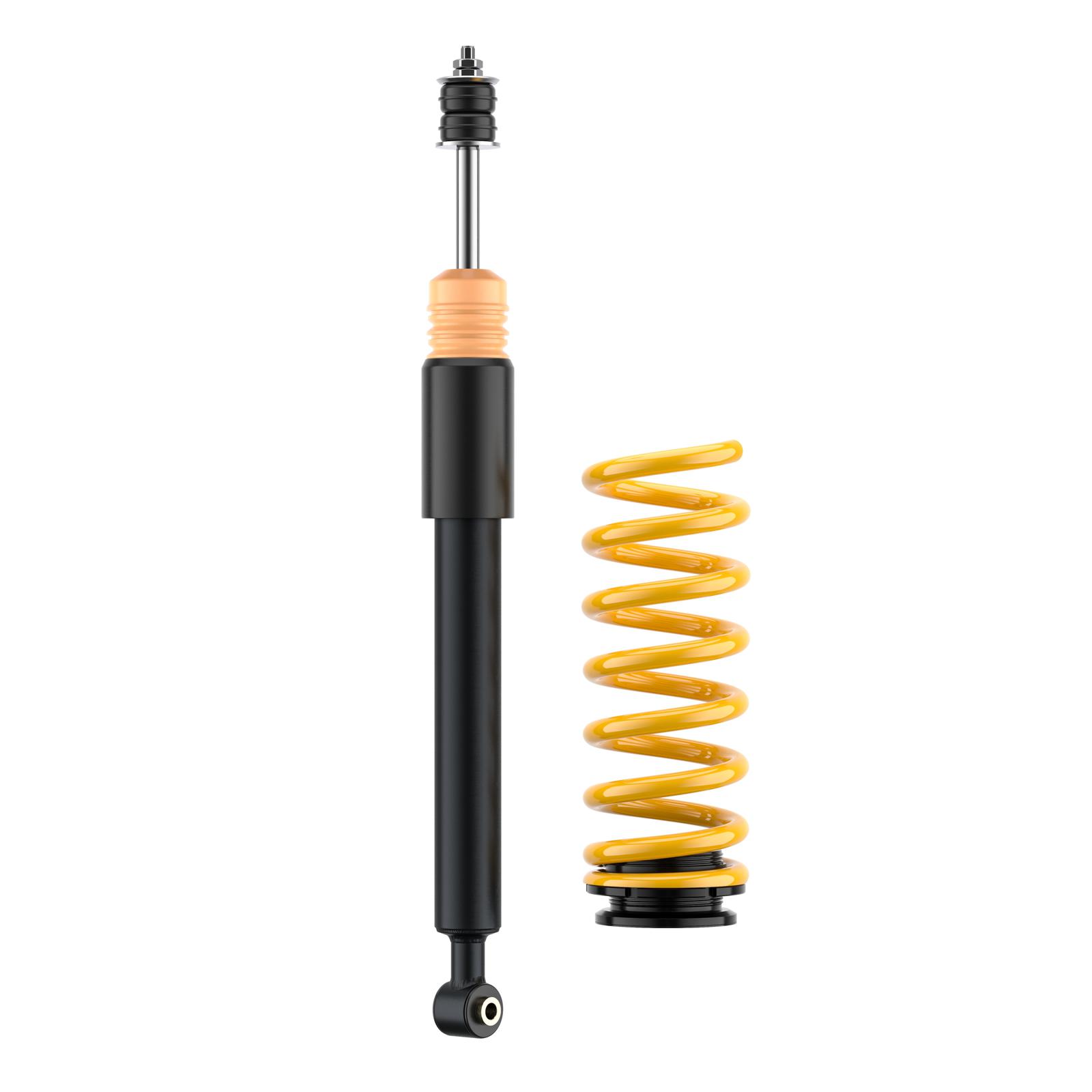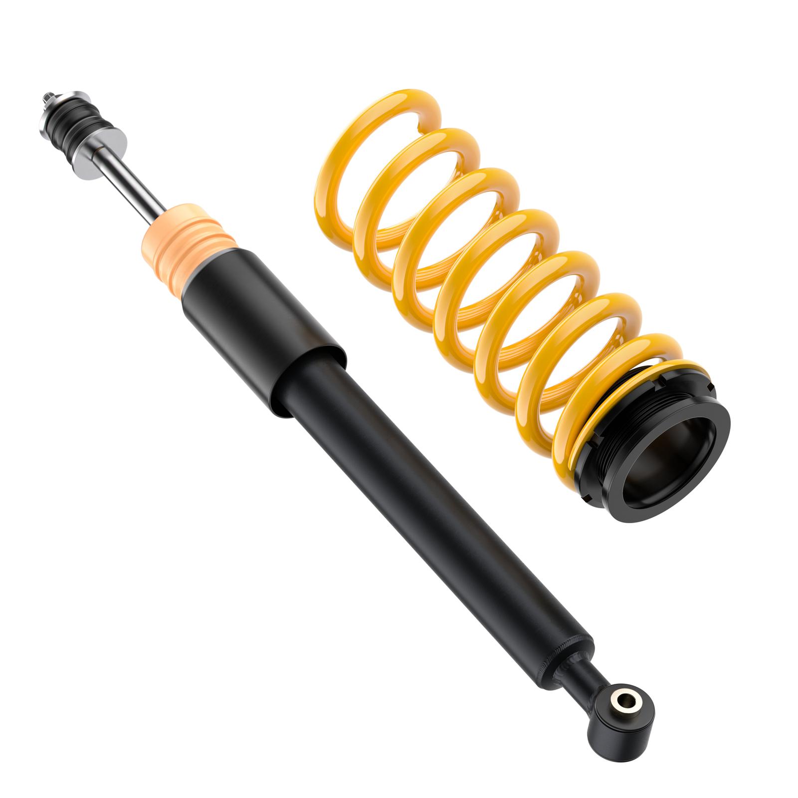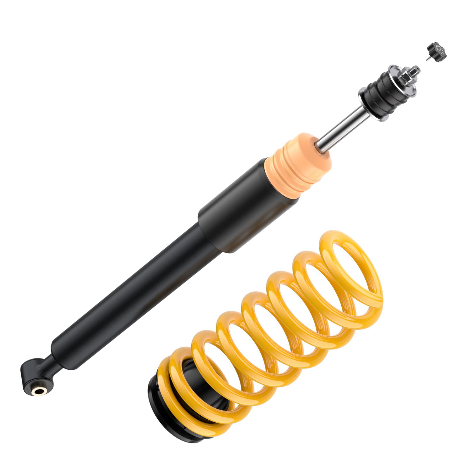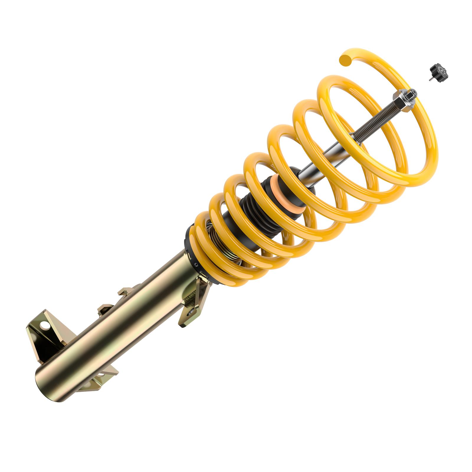 Die hochwertigen ST XA Gewindefahrwerke basieren auf dem Zweirohrdämpfungsprinzip in reibungsarmen und druckbeständigen Dämpfergehäusen. Dabei werden die Dämpfer direkt bei KW gefertigt. Ein Monoblock-Führungs- und Dichtungspaket reduziert im Dämpfer die Reibung beim Ein- und Austauchen der verchromten Kolbenstange. Dazu sorgen ein optimaler Korrosionsschutz und eine mehrfache Versiegelung des verzinkten Federbeins für einen langen Fahrspaß mit den ST XA Gewindefahrwerken.